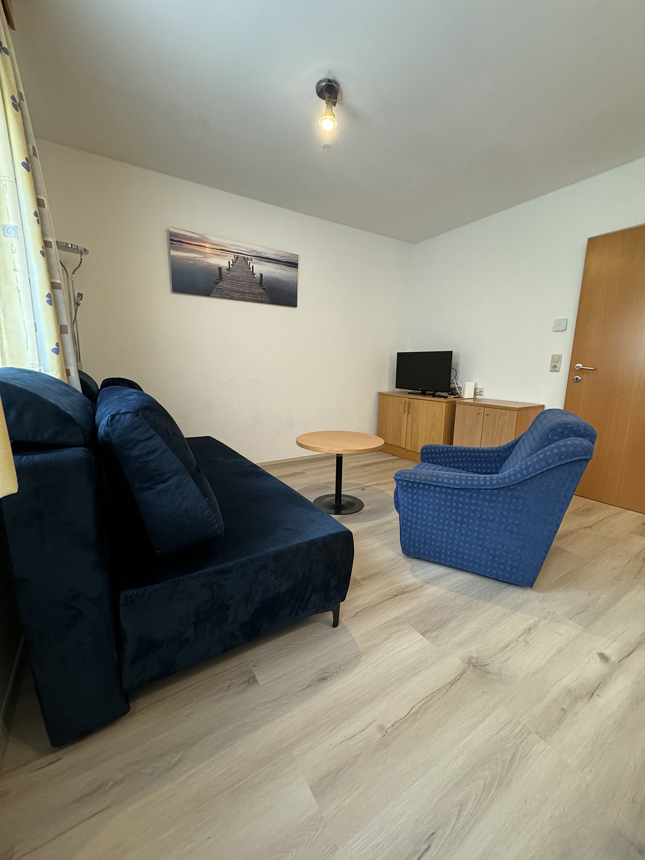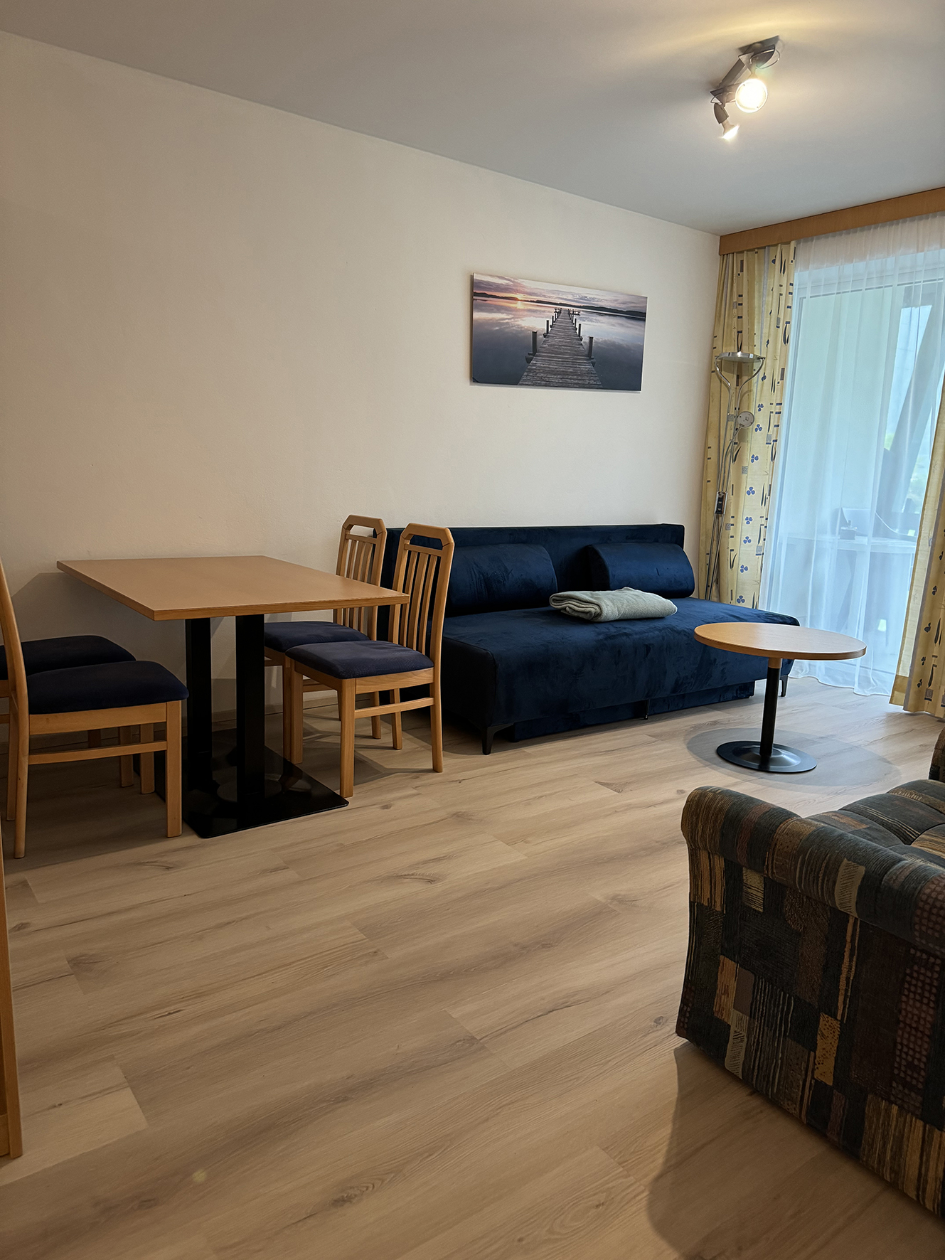 trilo 7 - 66 až 68 m² - 1 ložnice s manželskou postelí a 1 samostatným lůžkem, 1 ložnice se 2 samostatnými lůžky, obývací pokoj s částečně odděleným kuchyňským koutem a rozkládacím gaučem pro 2 osoby, sociální zařízení, oddělené WC, balkon; na vyžádání včetně kalkulace možnost dalšího pevného lůžka pro osmou osobu
