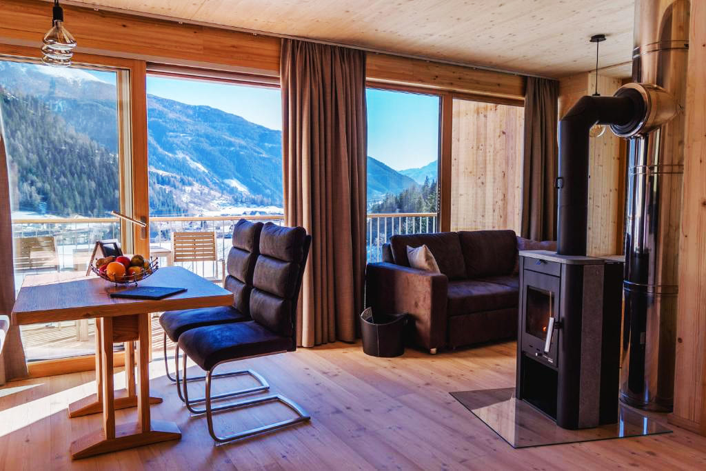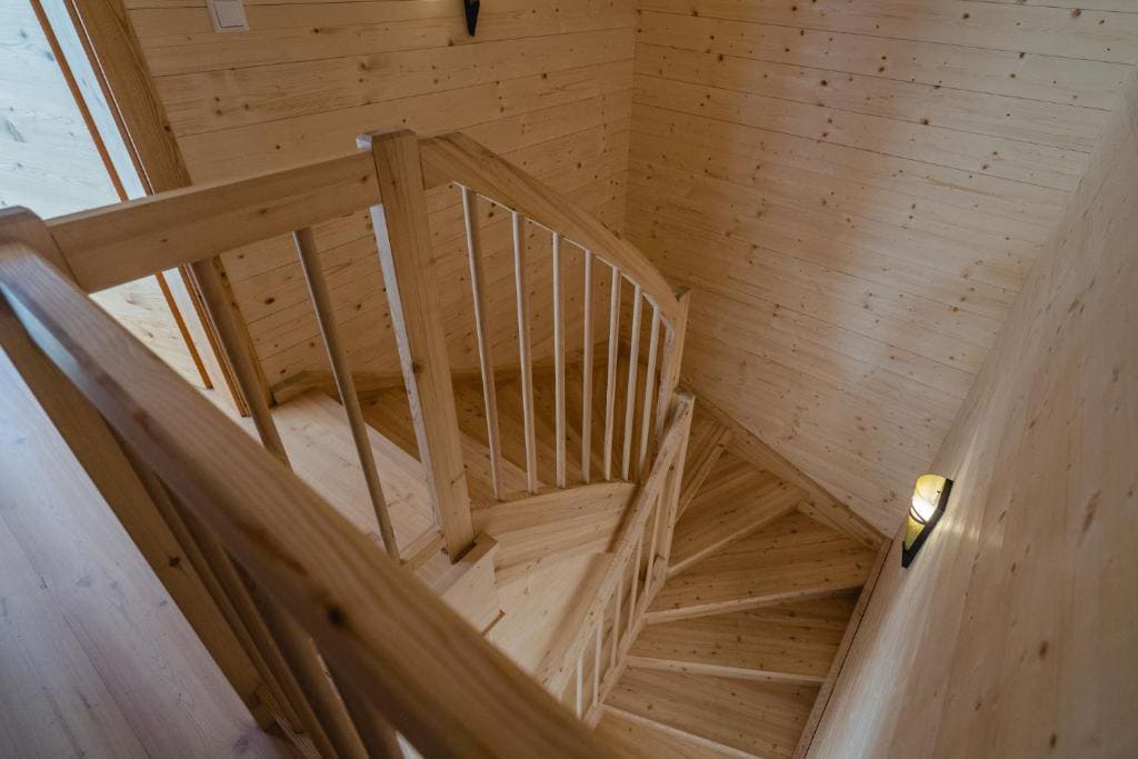 84 m² - 1. podlaží chaletu: obývací pokoj s kuchyňským koutem a rozkládacím gaučem pro 2 osoby, kamna (dřevo volně k dispozici), předsíň, terasa; 2. podlaží chaletu: ložnice s manželskou postelí, ložnice se 2 samostatnými lůžky, sociální zařízení, privátní sauna, oddělené WC