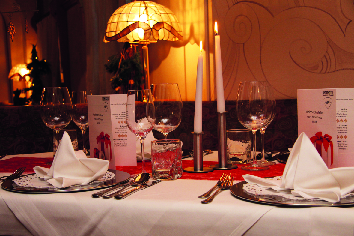 zpravidla servírované 3chodové menu s výběrem ze 2 hlavních jídel s přílohou, salátový bufet, nápoje za poplatek