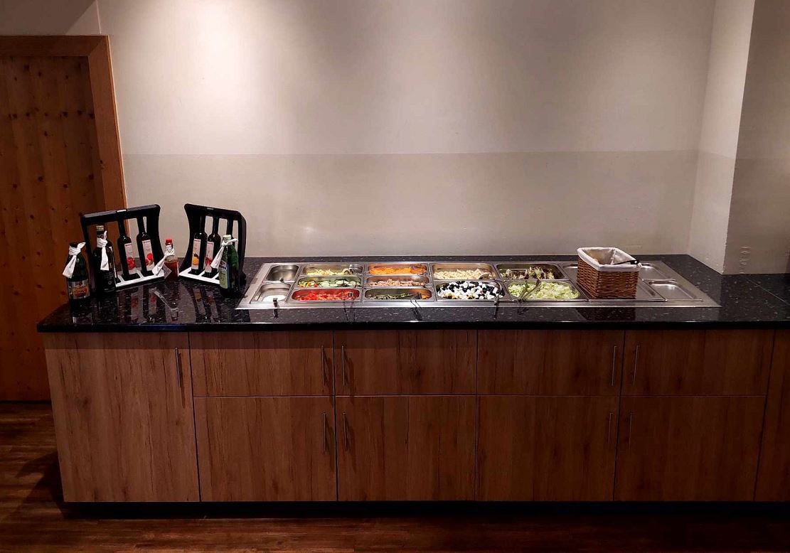 zpravidla servírované 3chodové menu s výběrem ze 2 hlavních jídel s přílohou, salátový bufet, nápoje za poplatek
