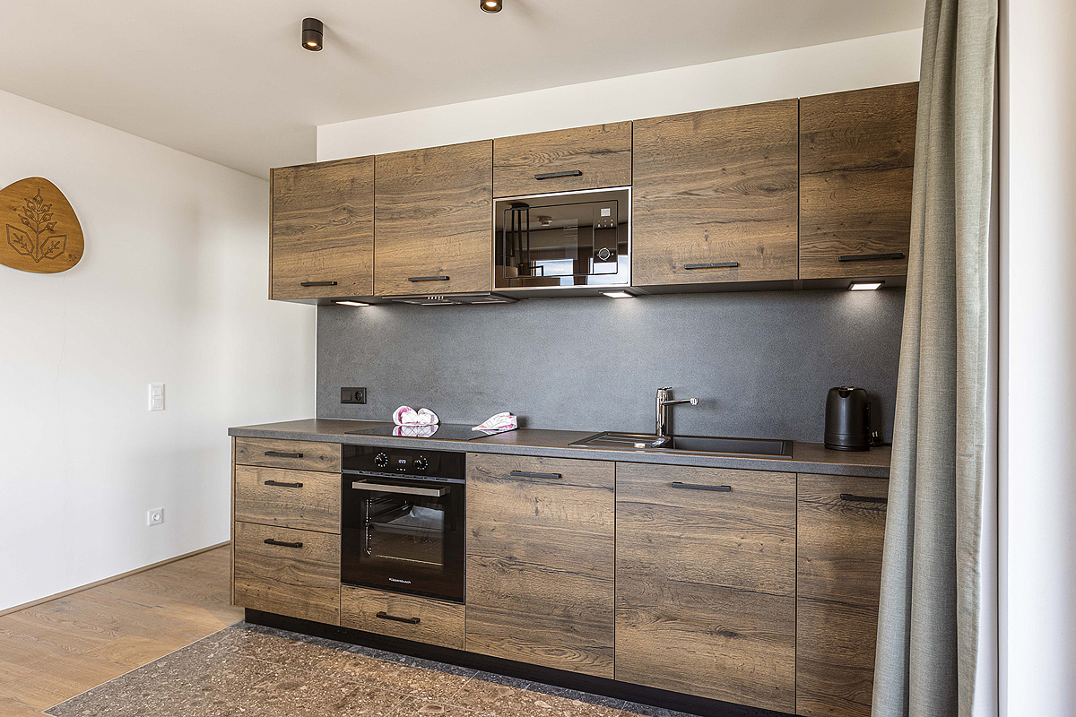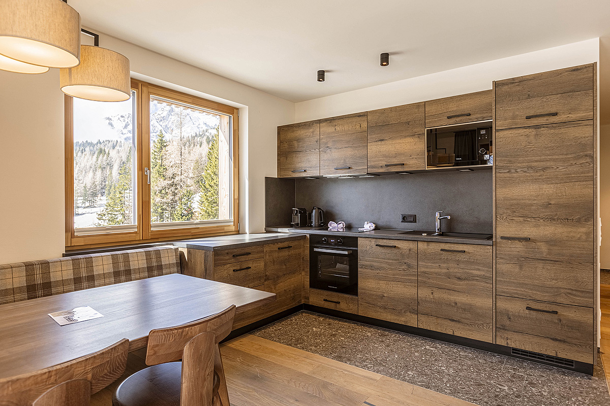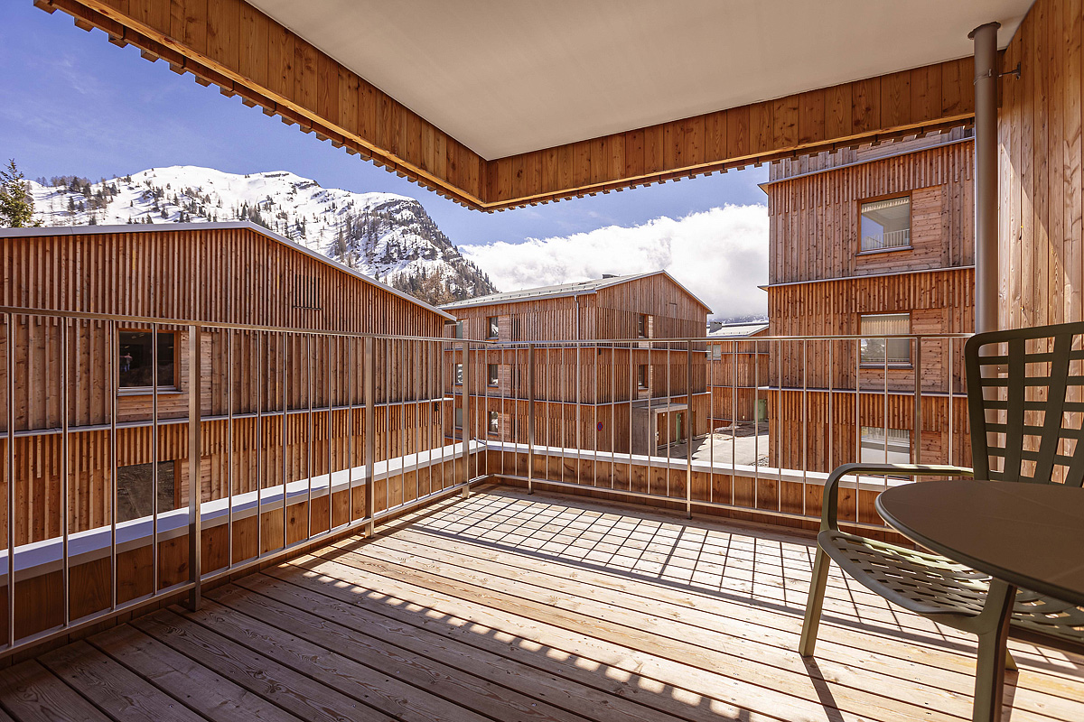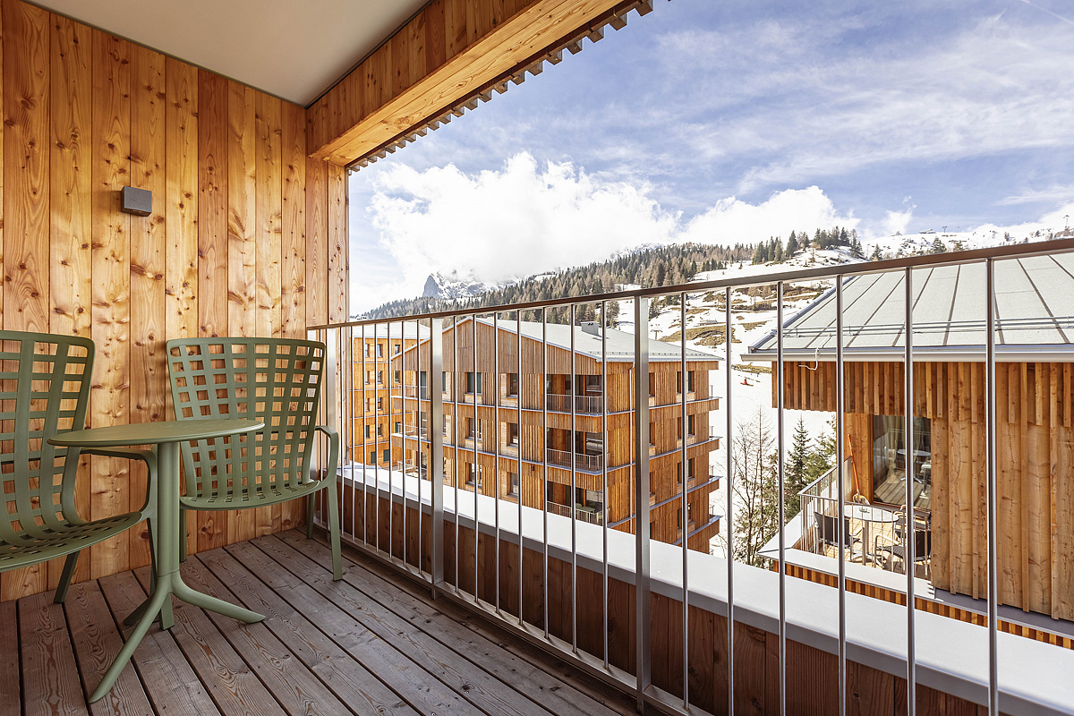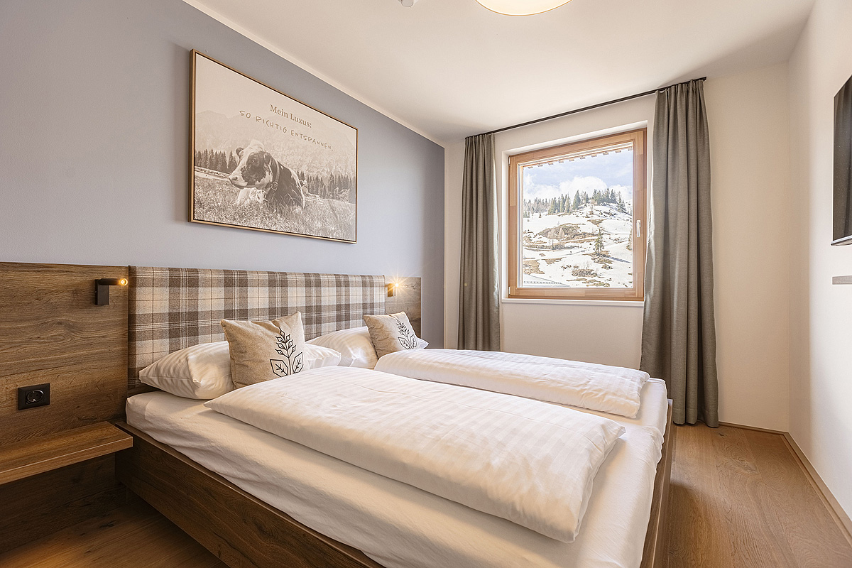 49 až 58 m² - 1 ložnice s manželskou postelí, ložnice s palandou, obývací pokoj s kuchyňským koutem, sociální zařízení, privátní sauna, balkon či terasa