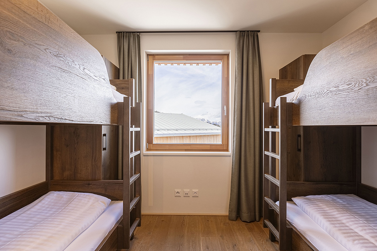 141 m² - 3 ložnice s manželskou postelí, 1 ložnice se 2 palandami, 1 ložnice se 2 manželskými postelemi formou velké palandy, obývací pokoj s kuchyňským koutem, 4x sociální zařízení, privátní sauna, balkon