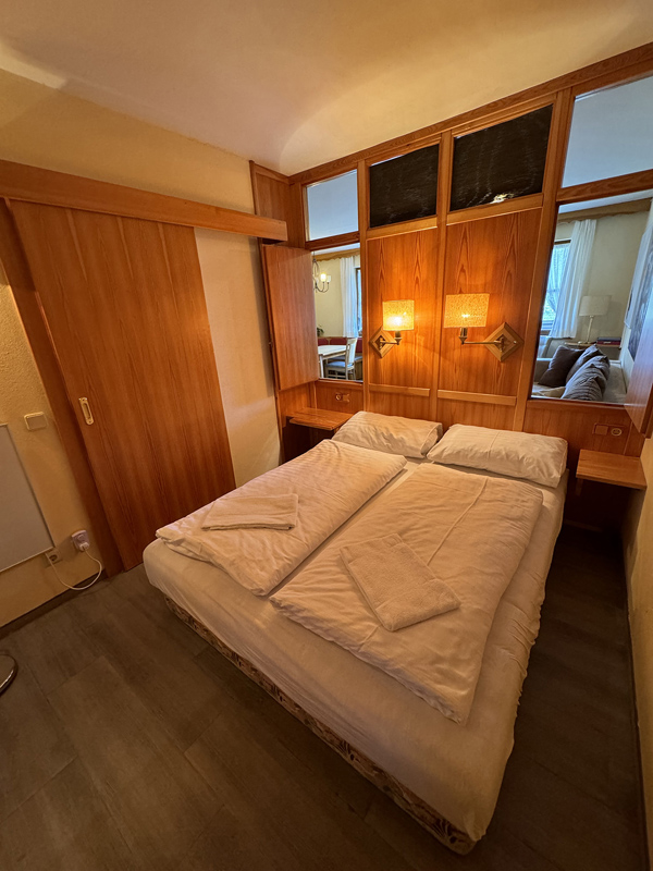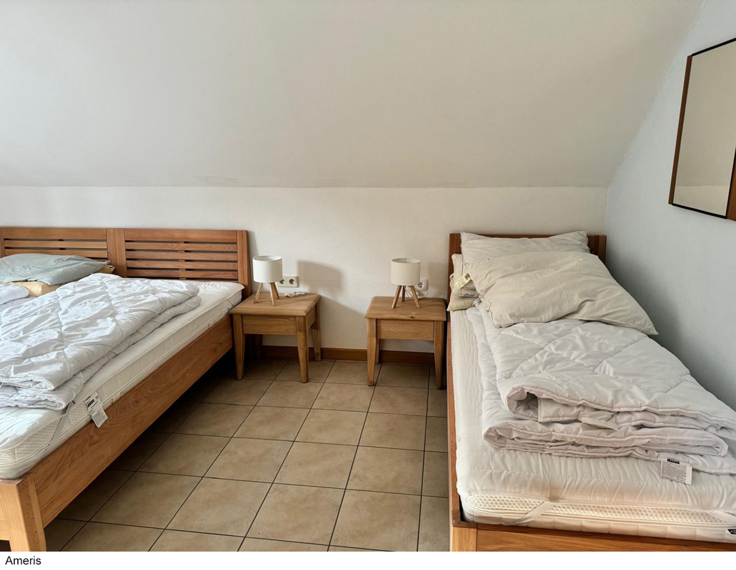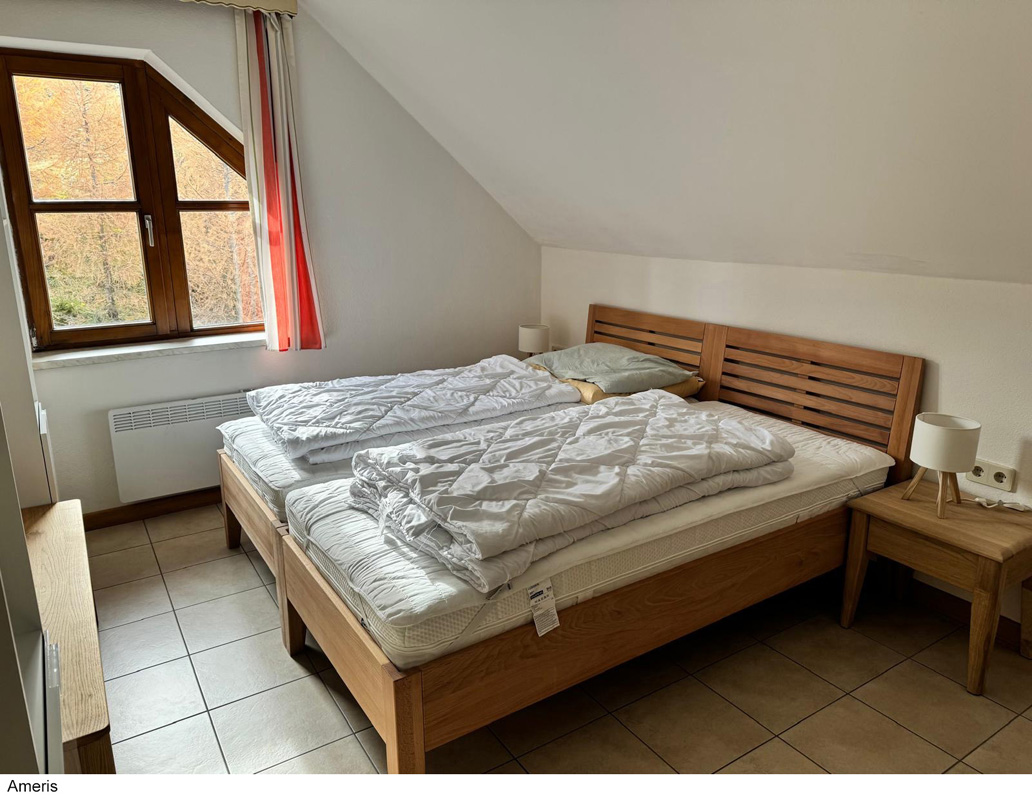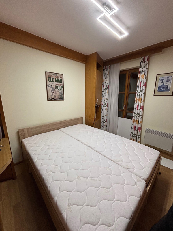 60 m² - 1 ložnice s manželskou postelí s oddělitelnými lůžky a dalším 1 samostatným lůžkem, ložnice se 2 samostatnými lůžky, obývací pokoj s kuchyňským koutem a rozkládacím gaučem pro 1 osobu, sociální zařízení s vanou, oddělené WC, balkon; apartmán je v podkroví