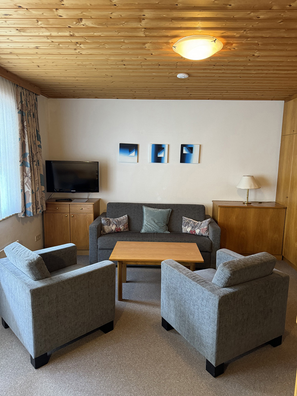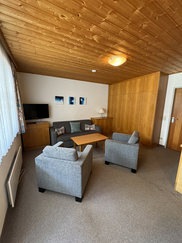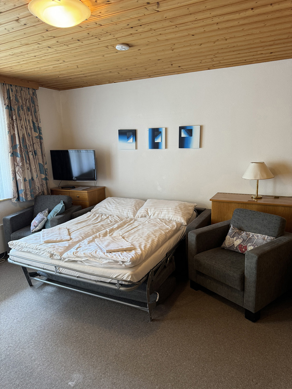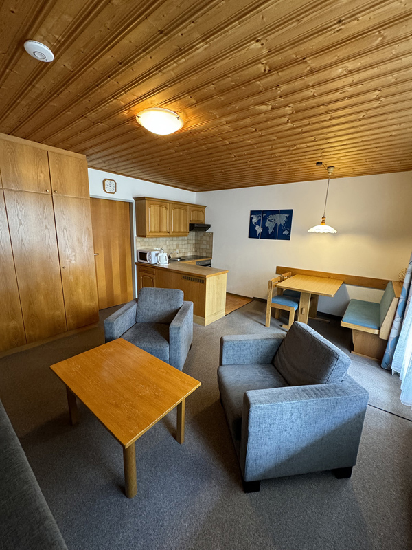 30 m² - obývací pokoj s kuchyňským koutem, manželskou postelí a rozkládacím gaučem až pro 2 děti do nedovršených 16 let, předsíň, sociální zařízení; apartmán je ve 3. patře