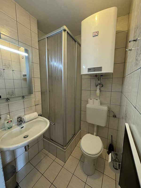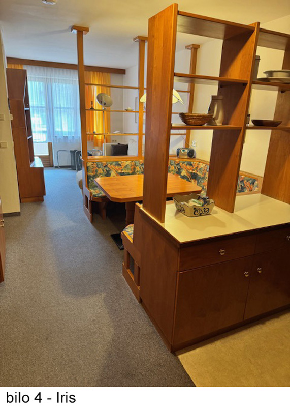41 m² - ložnice s manželskou postelí, obývací pokoj s kuchyňským koutem a rozkládacím gaučem pro 2 osoby, předsíň, sociální zařízení, oddělené WC, balkon; apartmán je ve 3. patře