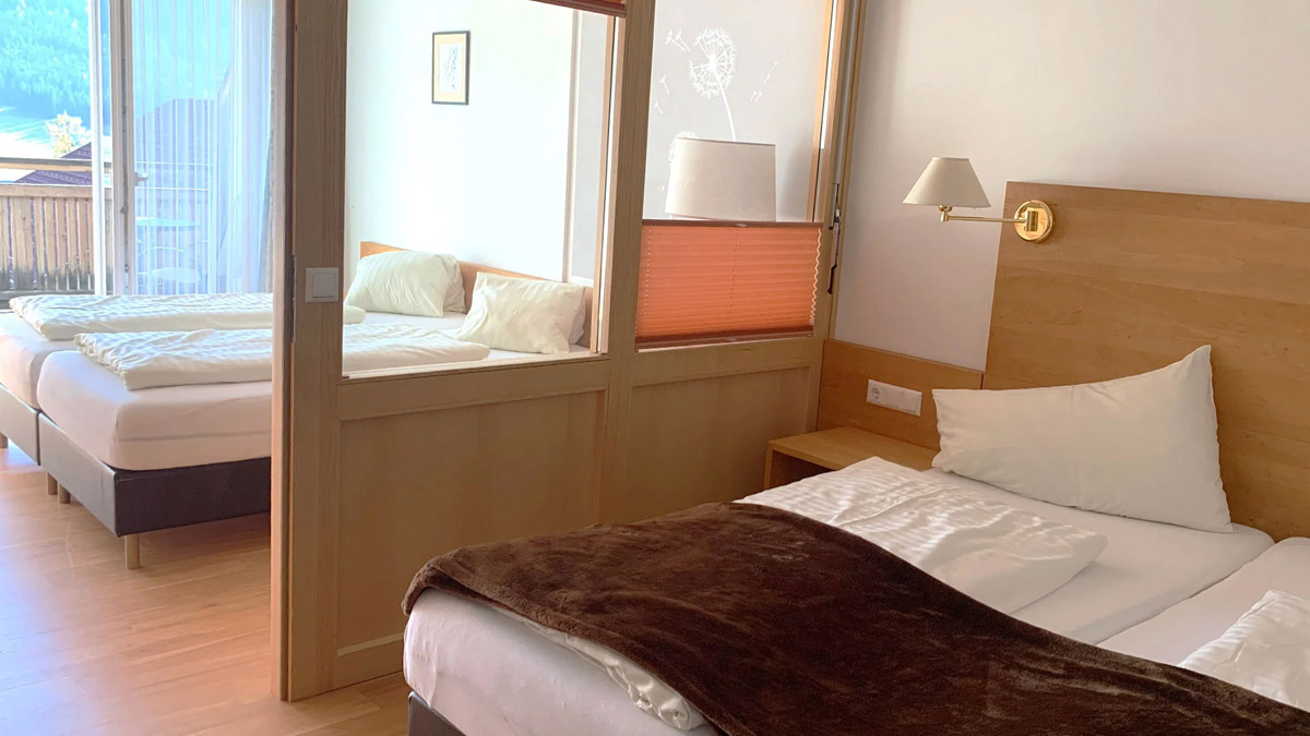 60 m² - obývací pokoj s kuchyňským koutem a manželskou postelí pro 2 osoby, galerie se 2 samostnými lůžky pro děti do nedovršených 20 let, sociální zařízení, zpravidla oddělené WC, balkon s výhledem na jezero