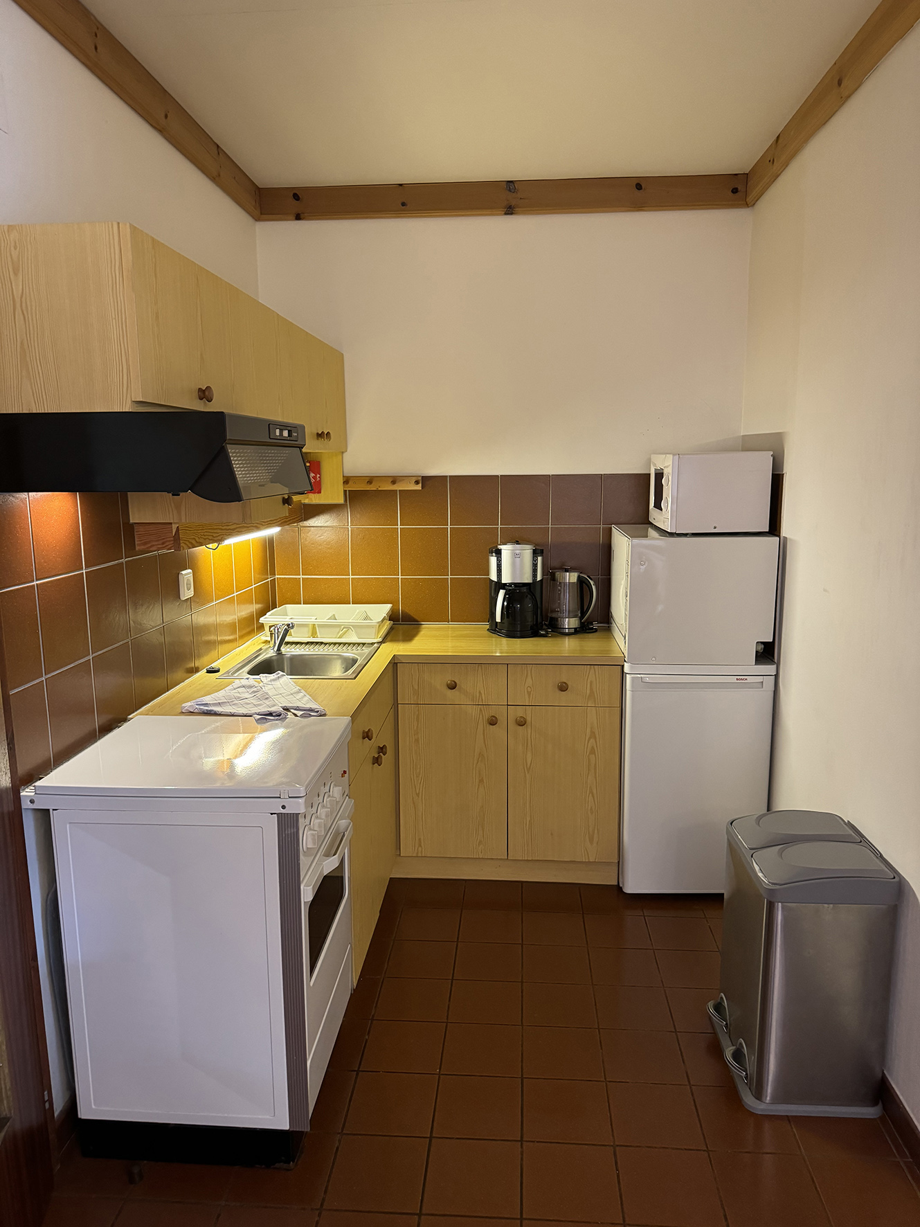 TV sat., trouba, malá myčka nádobí (pouze apt. trilo 6 a trilo 6 Eco), mikrovlnka, kávovar (na vyžádání typ Nespresso), rychlovarná konvice, wi-fi připojení k internetu