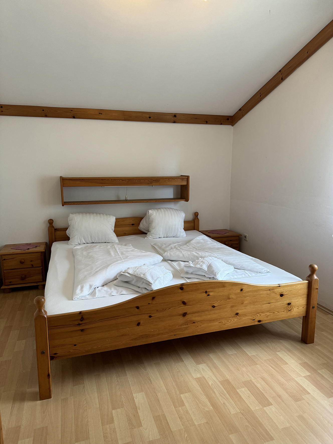 60 m² - 1 ložnice s manželskou postelí, ložnice se 2 samostatnými lůžky, obývací pokoj s kuchyňským koutem a rozkládacím gaučem (šíře 140 cm) pro 2 osoby, sociální zařízení se sprchou či vanou, oddělené WC, balkon či terasa; 2 byty jsou v 2. patře a 1 byt v přízemí s terasou; 1 byt má 3 ložnice (1x manželská postel a 2x ložnice s 1 lůžkem každá); možná i varianta 2 ložnice s manželskou postelí (1x šíře 160 cm), tyto byty jsou v 1. patře