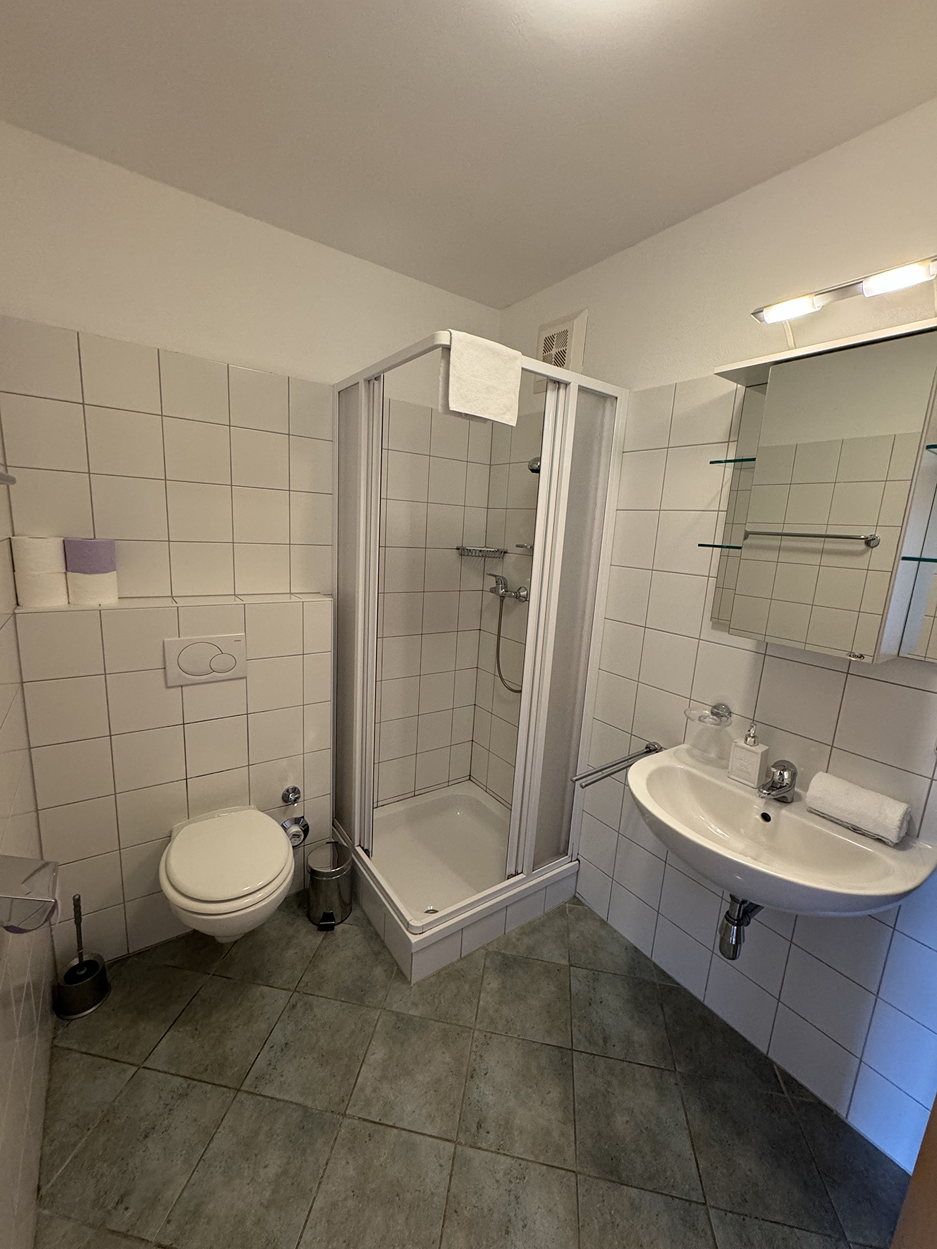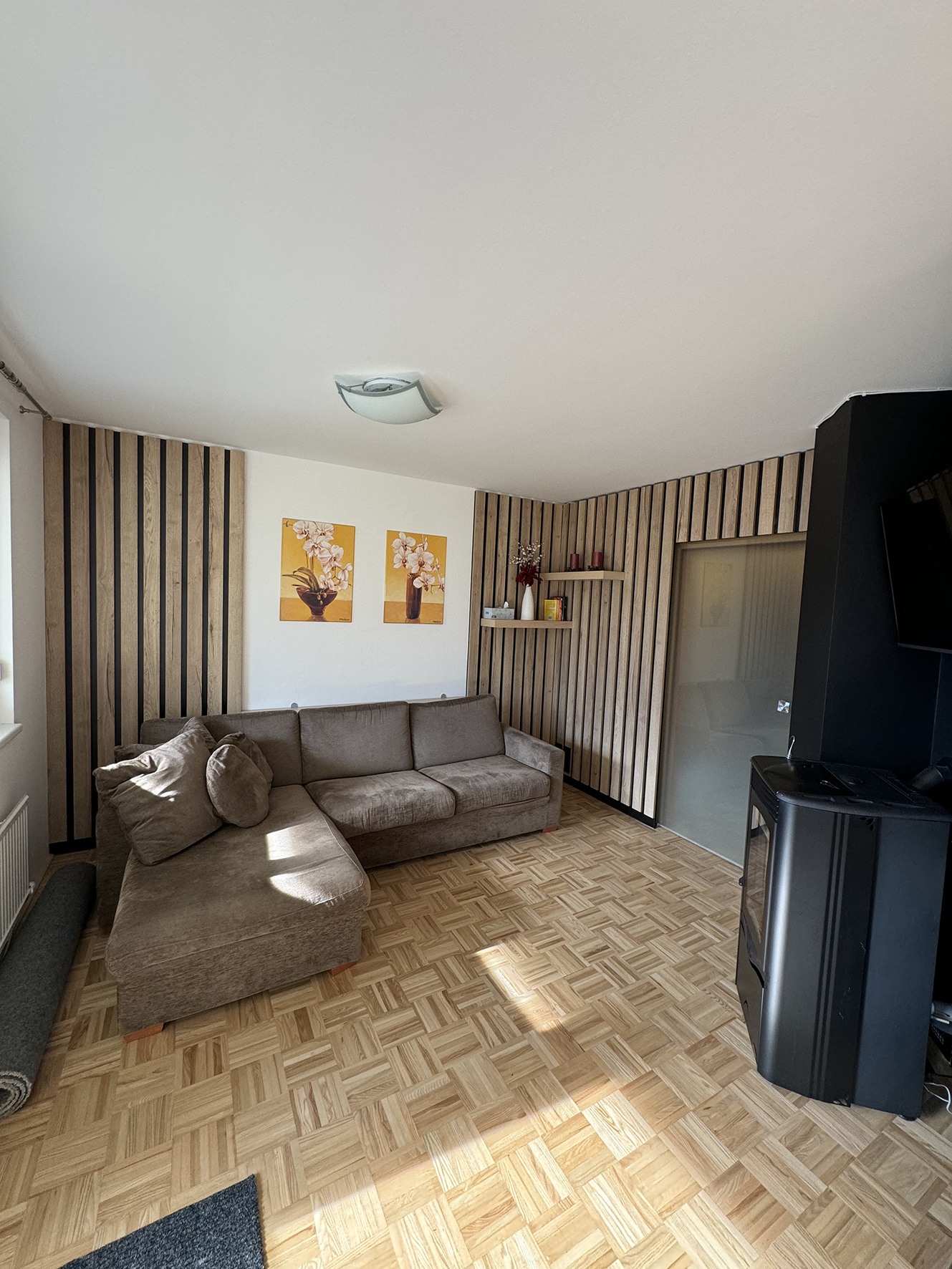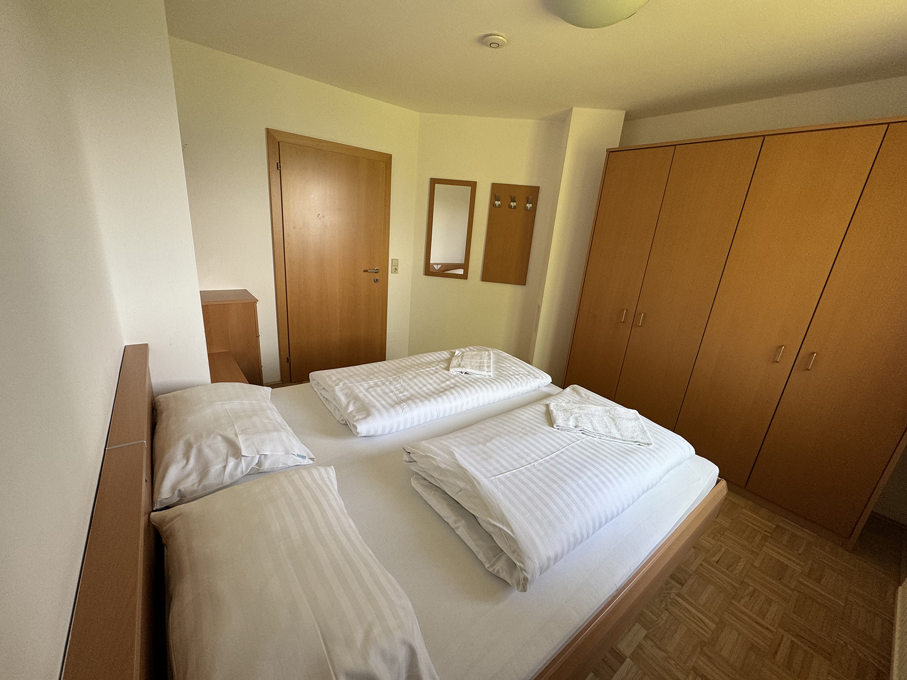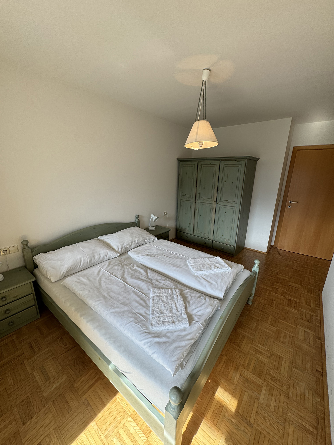 trilo 4+1 - 65 m² - 1 ložnice s manželskou postelí, ložnice se 2 samostatnými lůžky, obývací pokoj s kuchyňským koutem a rozkládacím gaučem pro 1 dítě do nedovršených 16 let, předsíň, sociální zařízení, oddělené WC, balkon; apartmán je v 1. patře; krb (jen jako nefunkční dekorace); NENÍ POVOLEN POBYT SE PSEM!