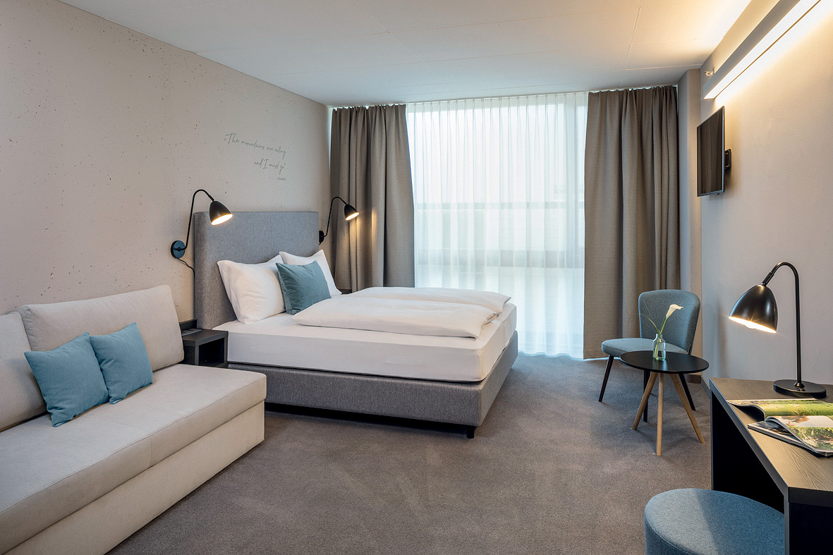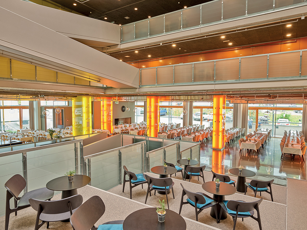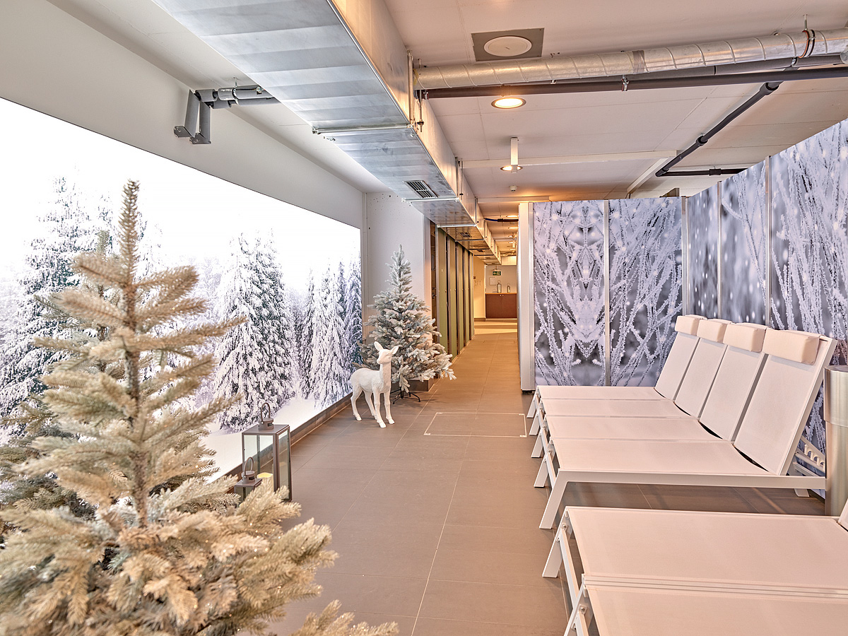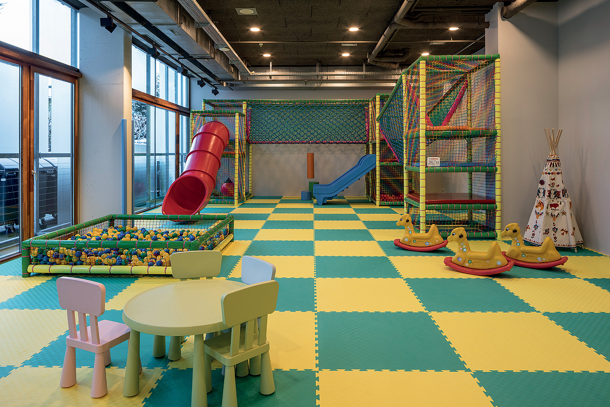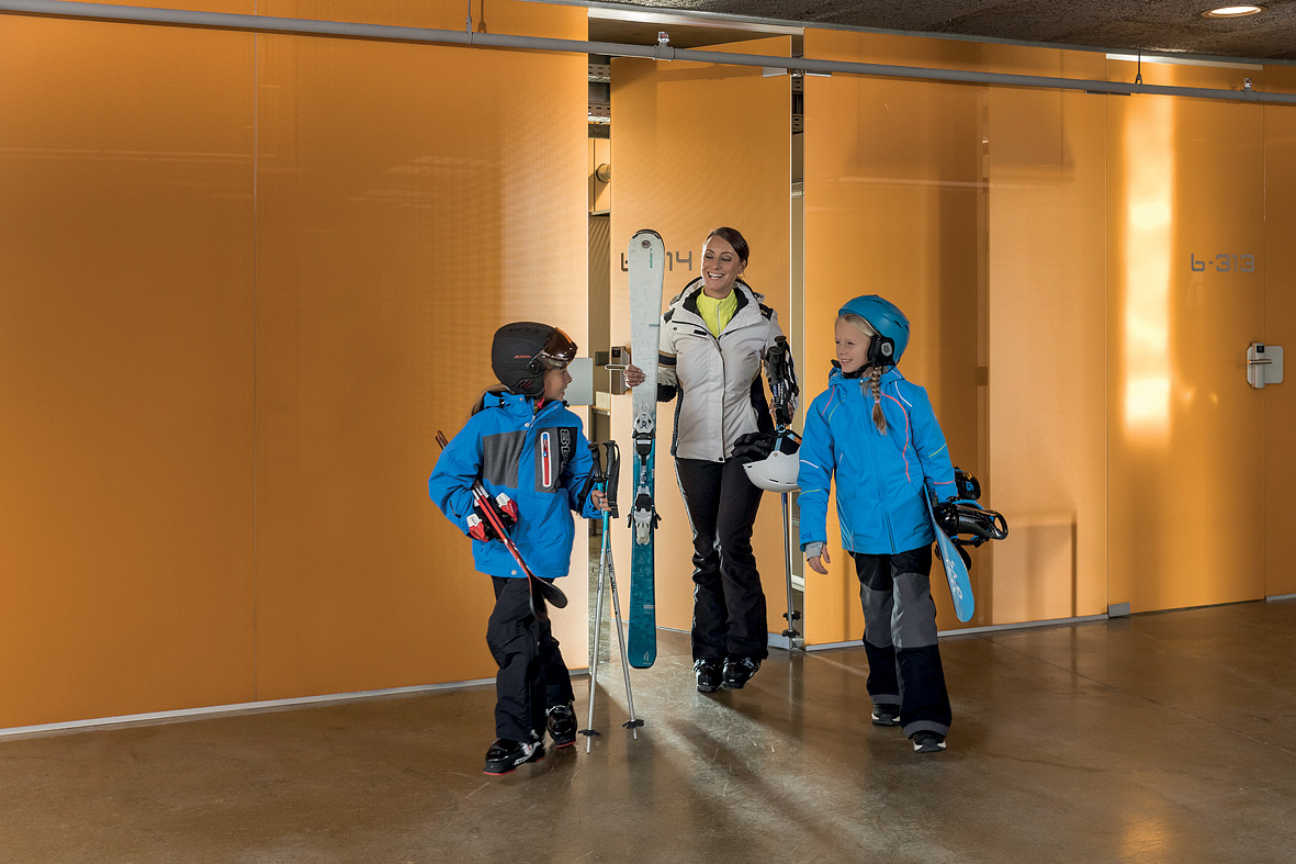 architektonicky zajímavý hotel u dolní stanice lanovky, venkovní vyhřívaný Infiniti bazén propojený s vnitřním bazénem a zcela netradičně vnitřní rampy a privátní ski depot přímo před každým pokojem