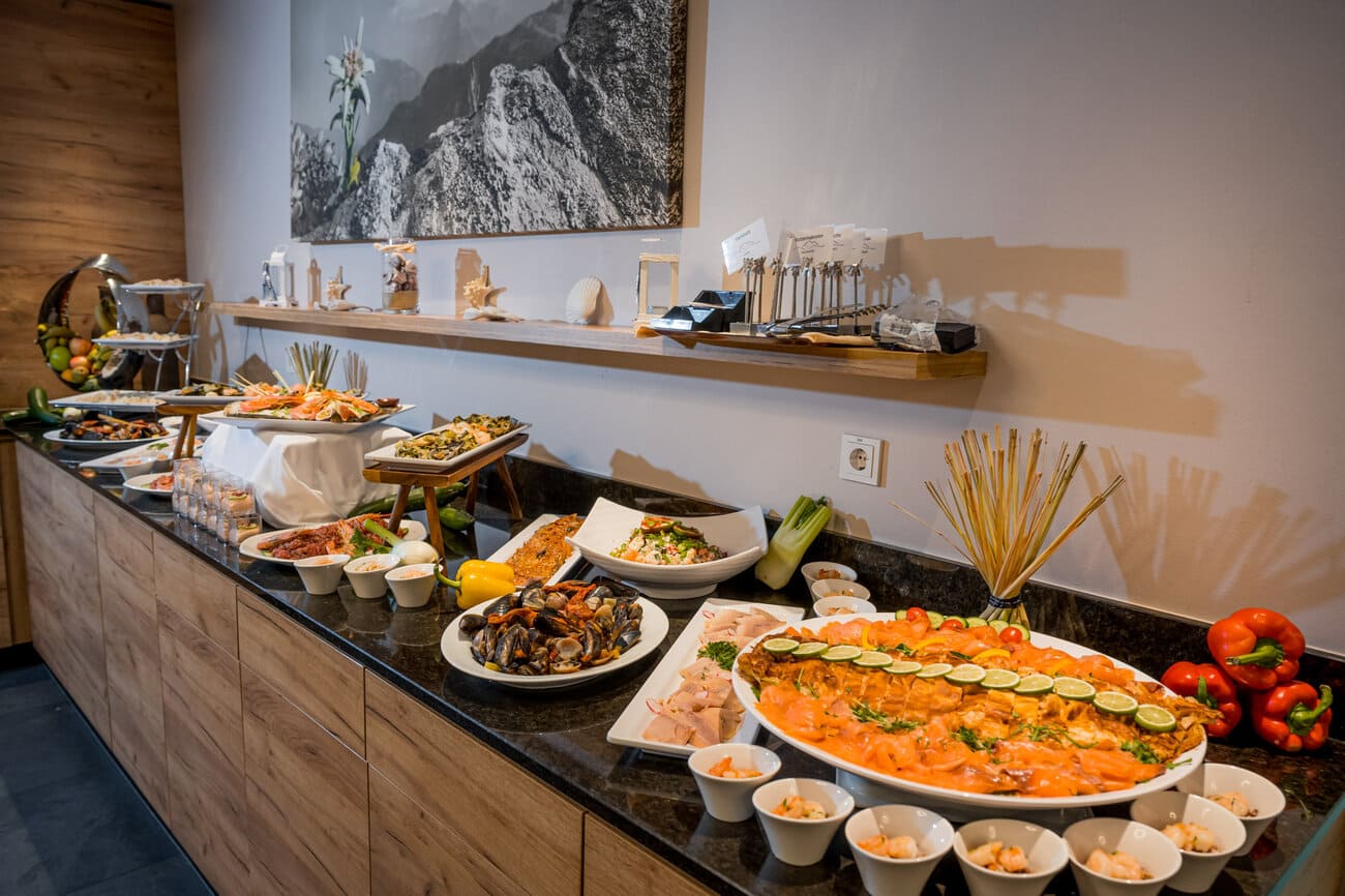 formou tématických bufetů či servírované menu o 5 chodech s výběrem ze 3 hlavních jídel s přílohou, předkrmů, polévek a salátů, dezert, nealkoholické nápoje, káva a čaj; ostatní nápoje za poplatek