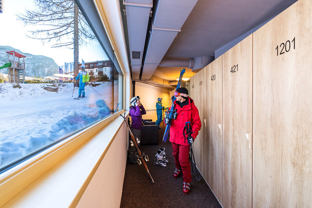 recepce / velká lobby, restaurace, bar, vinotéka, velká dětská herna 600 m², hlídací služba dětí / herna 150 m² (od 4 do 12 let), dětská lezecká stěna, wi-fi připojení k internetu, místnost s uzamykatelnými vyhřívanými boxy na lyže a boty, výtah, vyhrazené parkoviště (počet míst omezen), garážová stání*, půjčovna lyžařského vybavení*, lyžařská škola*