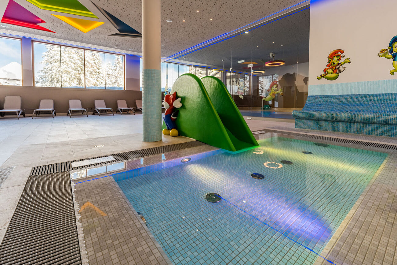lázně Kristall Spa o velikosti 1.500 m² - bazén, dětský bazének se skluzavkou, 7x sauna (finská sauna, bio sauna, bylinná, caldarium), pára, infrakabina, relaxační místnost s lehátky, posilovna, masáže*, kosmetické služby*