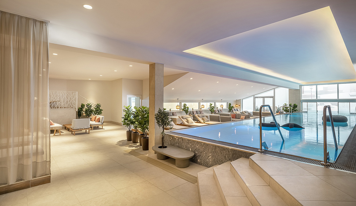 Balance SPA o velikosti 720 m² - bazén 66 m², venkovní vyhřívaný bazén 32°C 22 m², finská sauna, bio sauna, infrasauna, aromatická pára, ledová jeskyně, relaxační koutek s vyhřívanými lavicemi, lehátky a nápojovým barem, masáže*, kosmetické služby*, posilovna s cardio zónou 48 m²; cvičební programy (např. jóga atd.)
