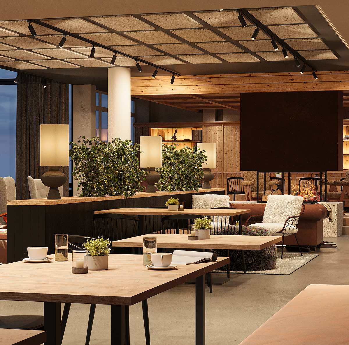 recepce / lobby, restaurace vyhrazená pro hotelové hosty, á la carte restaurace, bar na střeše, vinný sklípek, wi-fi připojení k internetu, dětský koutek, dětská herna, dětské divadlo, videohry*, úschovna lyží a lyžařských bot, výtah, vyhrazené parkoviště, garážová stání (počet míst omezen); půjčovna lyží, hotelový shuttle bus*