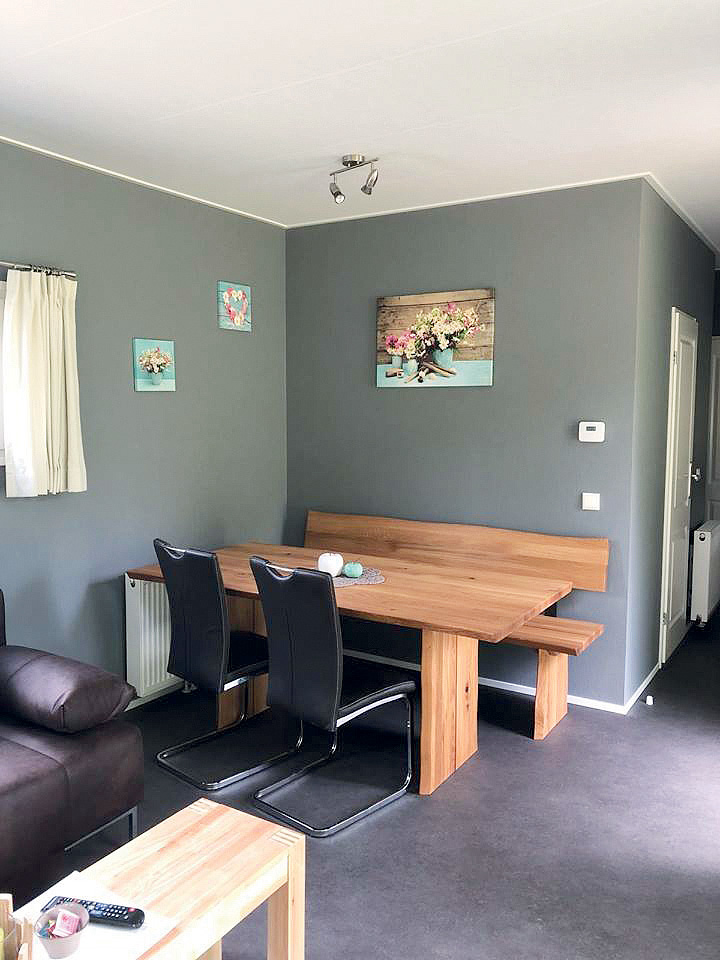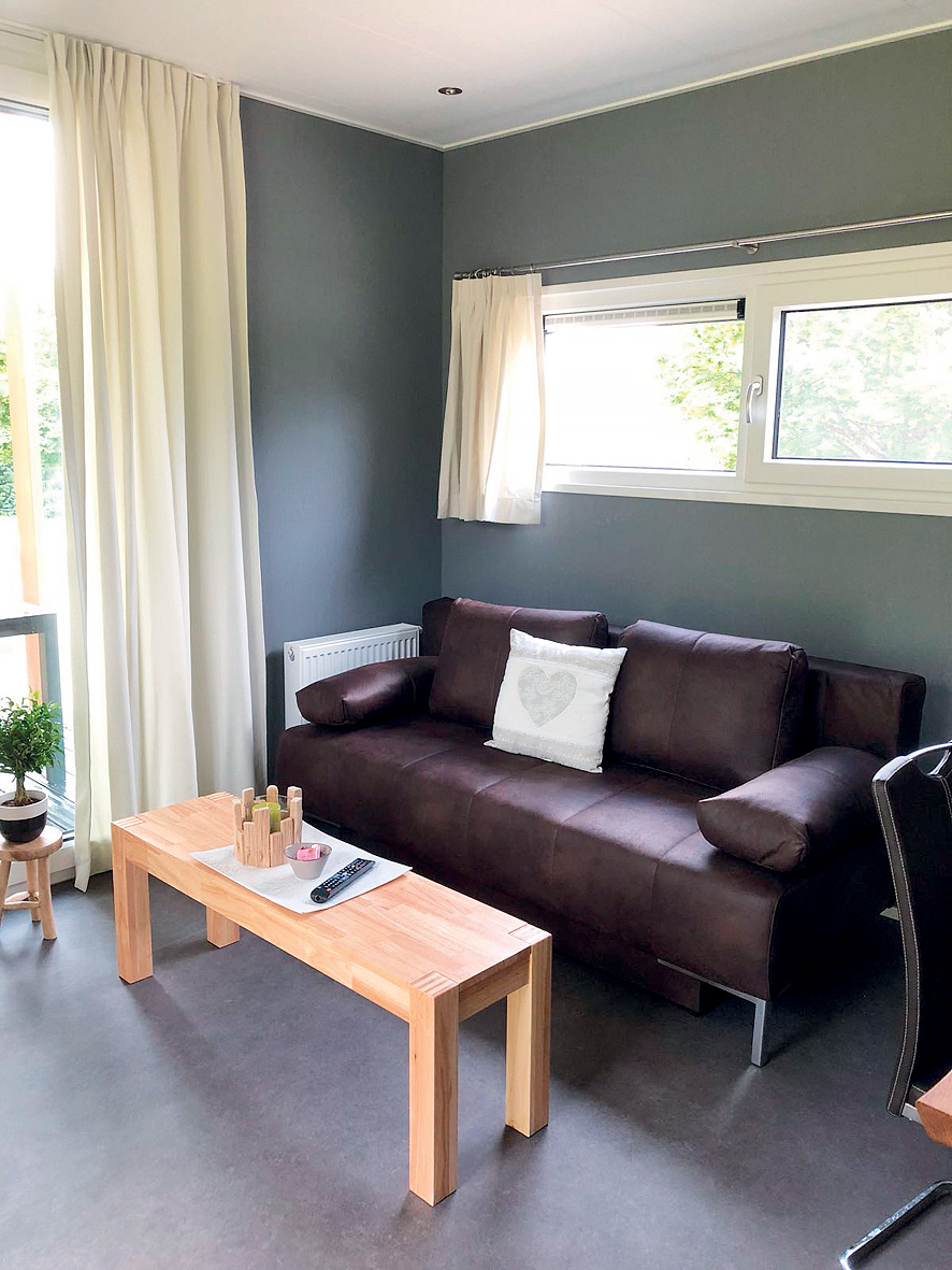 45 m² - 1 ložnice s manželskou postelí, ložnice se 2 samostatnými lůžky pro děti do nedovršených 18 let, obývací pokoj s kuchyňským koutem a gaučem, sociální zařízení, terasa