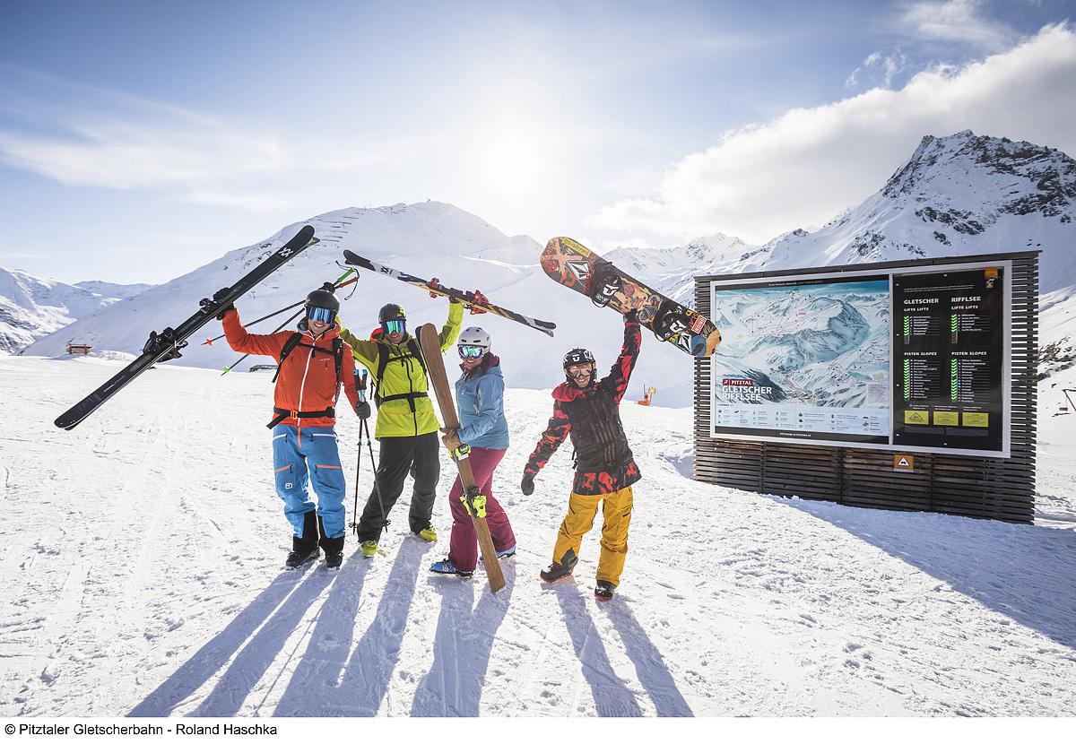 platí pro ledovec Pitztaler Gletscher a skiareál Rifflsee; skipasy od 4 dnů jsou za příplatek nabízeny také ve variantách „PLUS“ platných max. 1 až 2 dny na ledovci Kaunertaler Gletscher či ve skiareálu Hochzeiger