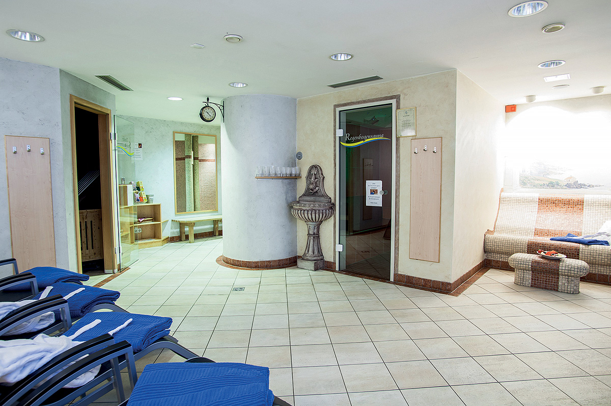 venkovní panoramatická sauna, finská sauna, pára, zážitková sprcha, relaxační koutek s vyhřívanými lavicemi a nabídkou čajů; děti do 16 let mají do wellness zóny přístup pouze v doprovodu dospělé osoby