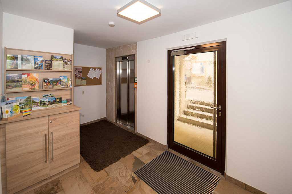 malá recepce / lobby, wi-fi připojení k internetu, úschovna lyží a lyžařských bot, výtah, vyhrazené parkoviště