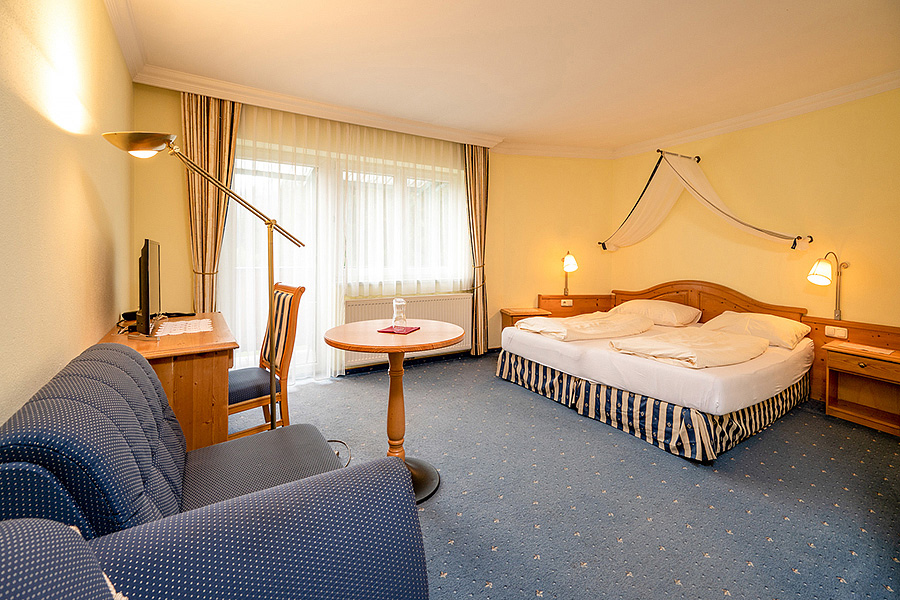pokoj s manželskou postelí, 3. a 4. lůžka formou rozkládacího gauče či křesla pro 1 až 2 děti do nedovršených 16 let, sociální zařízení, balkon