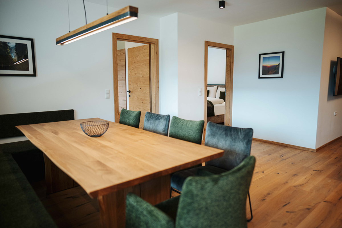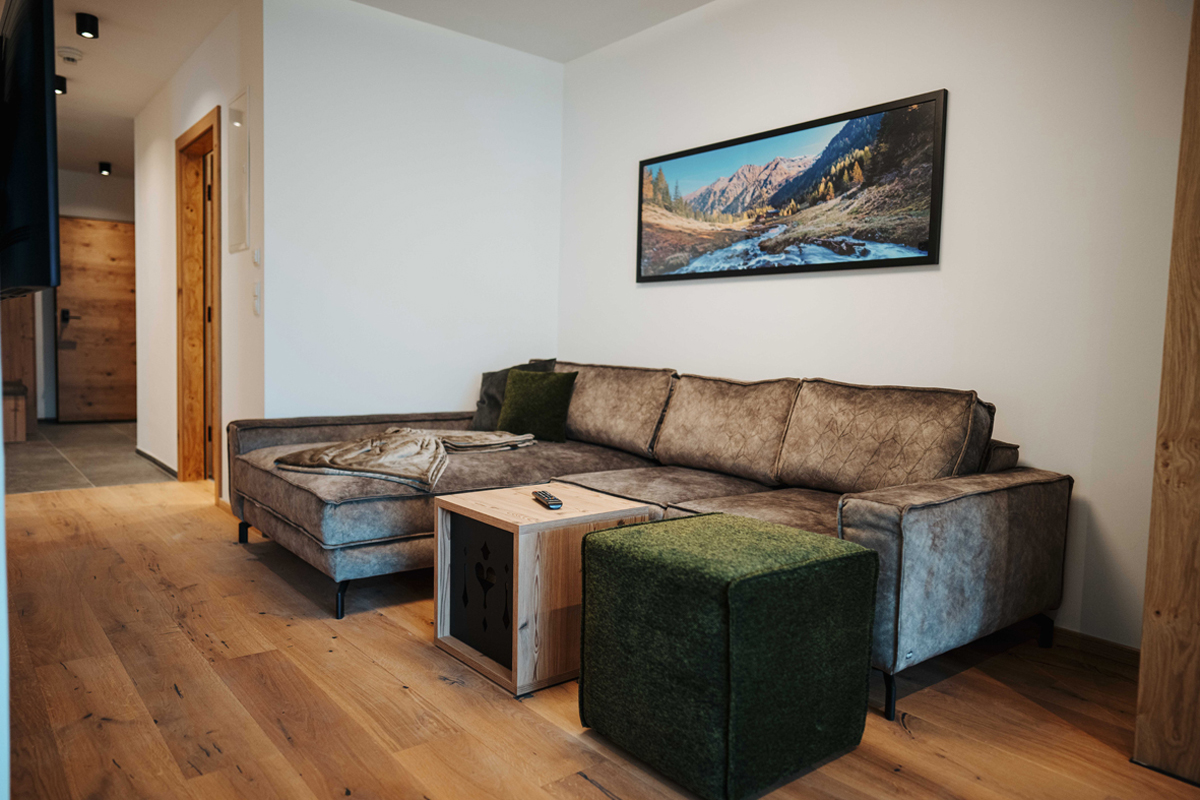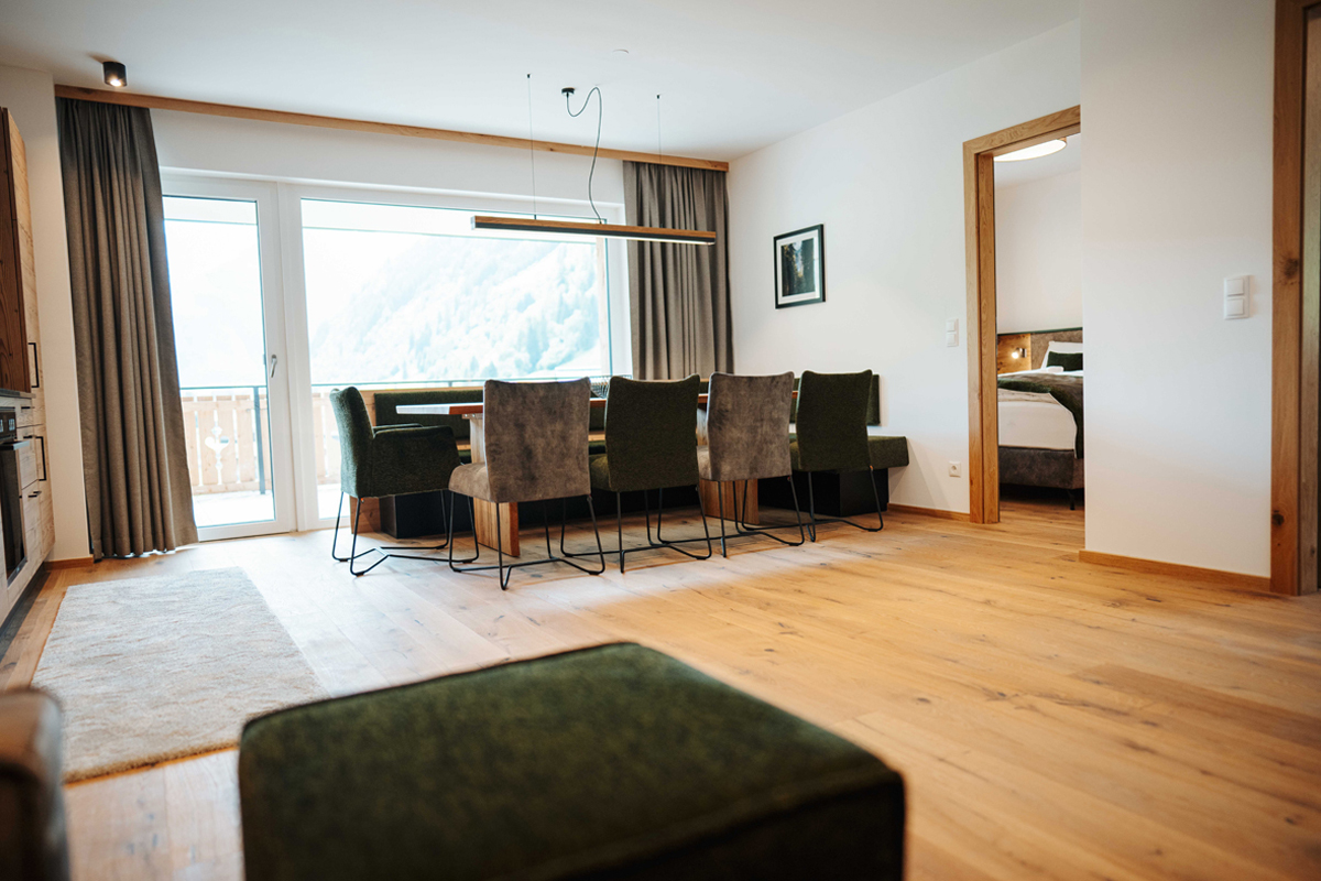 quintilo 10 Grossglockner - 100 až 115 m² - 4 ložnice s manželskou postelí, obývací pokoj s kuchyňským koutem a rozkládacím gaučem pro 2 osoby, 2x sociální zařízení se sprchou či vanou, oddělené WC, balkon