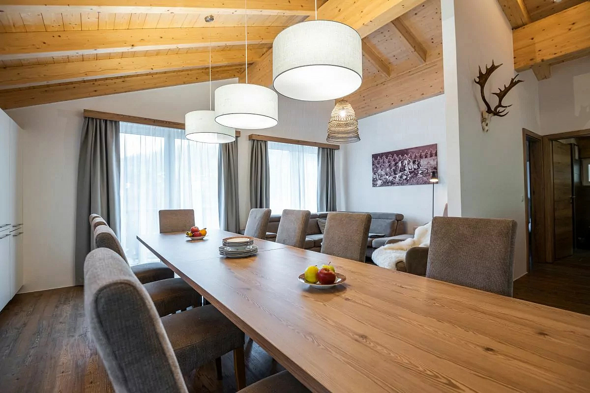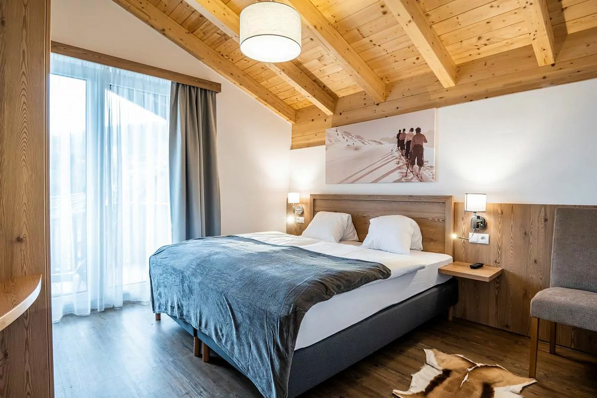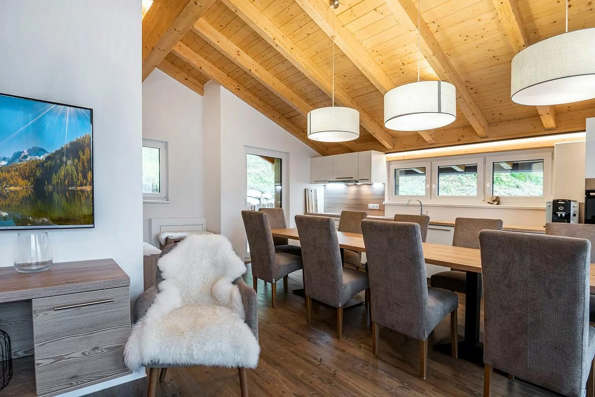115 m² - 1. podlaží chaletu: obývací pokoj s kuchyňským koutem a gaučem, úschovna lyží a lyžařských bot, samostatné WC, terasa; 2. podlaží chaletu: 4 ložnice s manželskou postelí, 3x sociální zařízení (2x se sprchou a 1x vanou a privátní infrasaunou), 2x balkon; chalet má vlastní podzemní parkování pro 2 auta přímo pod chaletem
