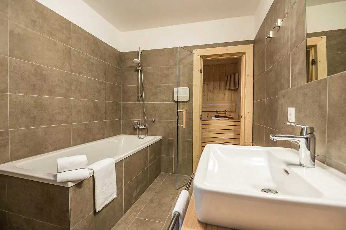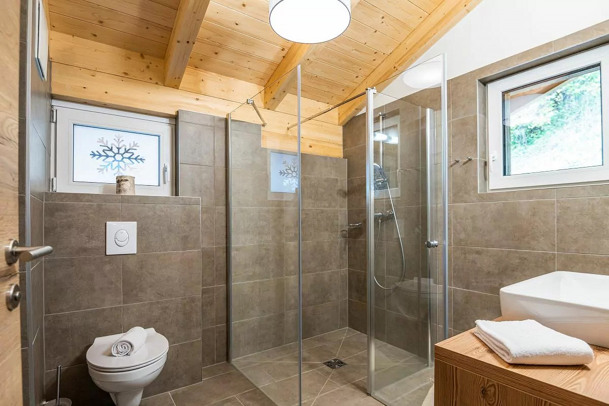 115 m² - přízemí chaletu: 1 ložnice s manželskou postelí, sociání zařízení s vanou; 1. podlaží chaletu: samostatná kuchyň, úschovna lyží a lyžařských bot, samostatné WC, terasa; 2. podlaží chaletu: 3 ložnice s manželskou postelí, 3x sociální zařízení (2x se sprchou a 1x se sprchou a privátní infrasaunou), 2x balkon