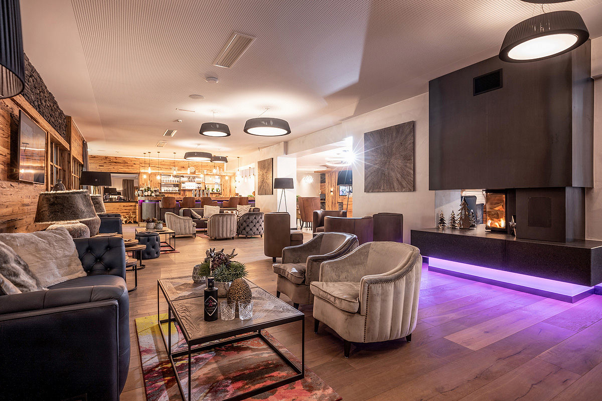 velká recepce / lobby s otevřeným krbem, 3x restaurace vyhrazená pro hotelové hosty, à la carte restaurace "Place to meat", bar s otevřeným krbem, bar / vinotéka, wi-fi připojení k internetu, dětský koutek, dětská herna, dětské kino, úschovna lyží a lyžařských bot, 2x výtah, vyhrazené parkoviště, garážová stání (1 parkovací místo / pokoj), nabíjecí stanice elektroaut*, obchod se sportovním oblečením, lyžařská škola, půjčovna lyžařského vybavení