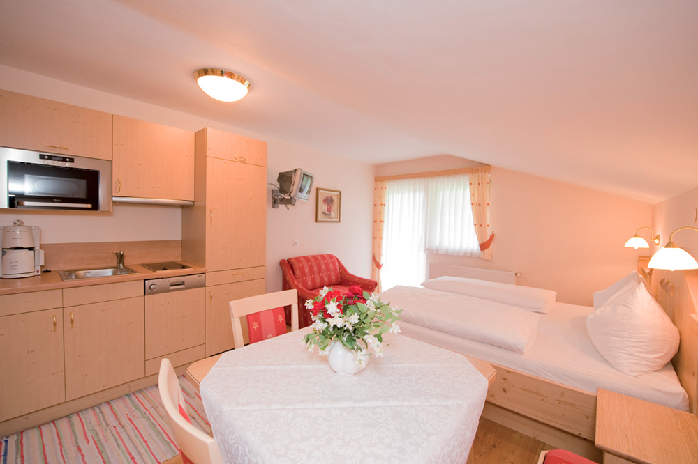 bilo 3 - 40 m² - ložnice s manželskou postelí, obývací pokoj s rozkládacím gaučem pro 1 osobu a kuchyňským koutem, sociální zařízení, balkon či terasa