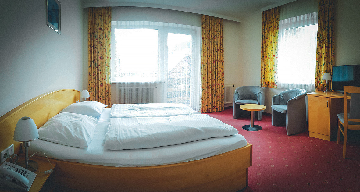 Standard 2 - 17 m² - pokoj s manželskou postelí, sociální zařízení se sprchou či vanou; infant nad rámec maximální obsazenosti pokoje není povolen