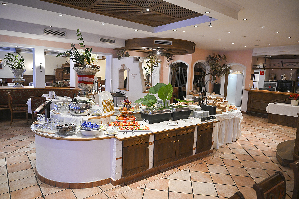 zpravidla servírované 5chodové menu s výběrem ze 3 hlavních jídel s přílohou, předkrmy a dezerty servírované či formou bufetu, salátový bufet; nápoje za poplatek