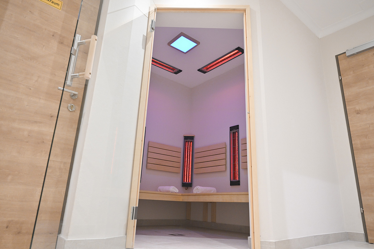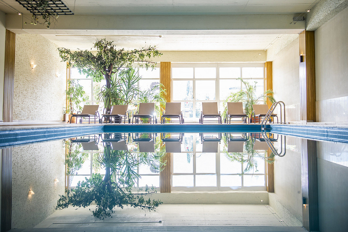 bazén 12 x 6 m, finská sauna#, bio sauna#, pára#, caldarium#, Kneippův chodník#, infrakabina#, relaxační koutek s lehátky#, masáže*, posilovna, stolní fotbal*; služby označené # jsou pro děti přístupné až od 14 let