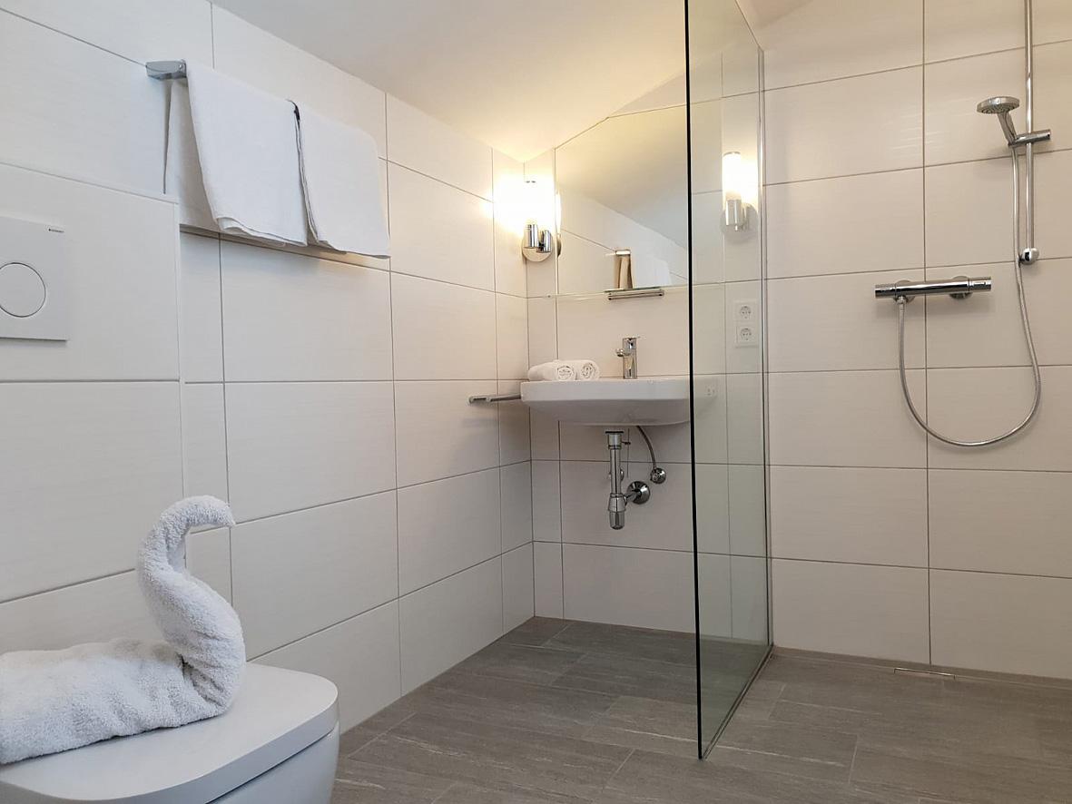 20 m² - pokoj s manželskou postelí a případně rozkládacím gaučem či přistýlkou pro 1 osobu, sociální zařízení se sprchou či vanou