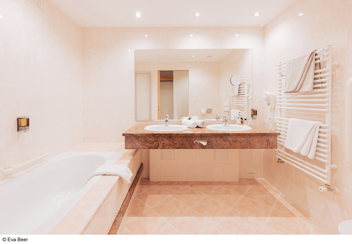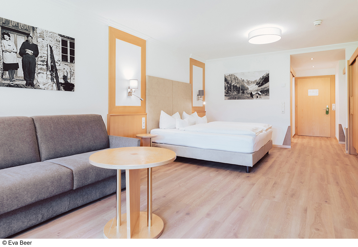 34 m² - pokoj s manželskou postelí a rozkládacím gaučem pro 1 dospělou osobu a 1 dítě do nedovršených 15 let či 2 děti do nedovršených 15 let, sociální zařízení s vanou, balkon či terasa zpravidla s výhledem na hory