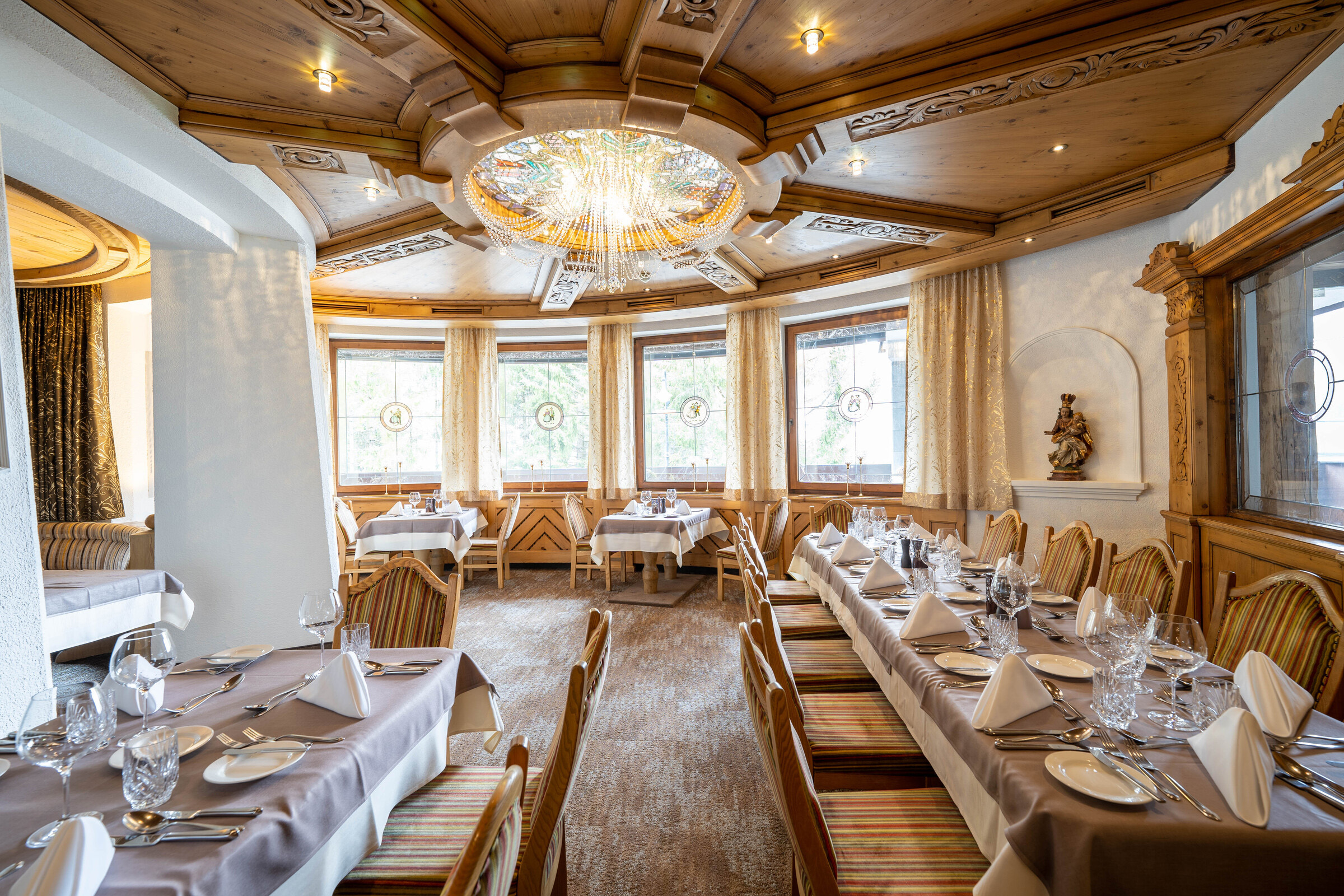 servírované 5chodové menu s výběrem hlavních jídel s přílohou, servírovaný teplý předkrm či polévka, zpravidla servírovaný studený předkrm, servírovaný dezert, salátový bufet, nápoje za poplatek