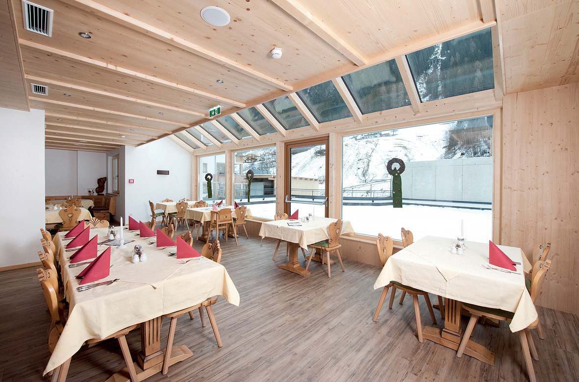 recepce / lobby, restaurace vyhrazená pro hotelové hosty, à la carte restaurace, stylová restaurace s krbem, bar, společenská místnost, dětská herna s malou lezeckou stěnou, wi-fi připojení k internetu, zimní zahrada s posezením, úschovna lyží a lyžařských bot, výtah, vyhrazené parkoviště