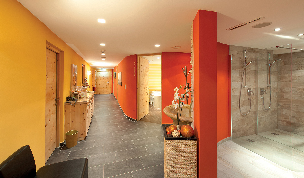 bazén 60 m², vířivka, 3x sauna, pára, infrakabina, horizontální solárium*, zážitková sprcha, relaxační koutek s lehátky, posilovna, masáže*, kosmetické služby*, biliár*, stolní tenis