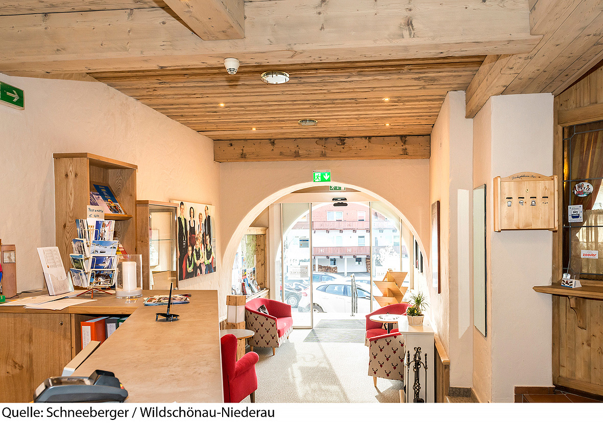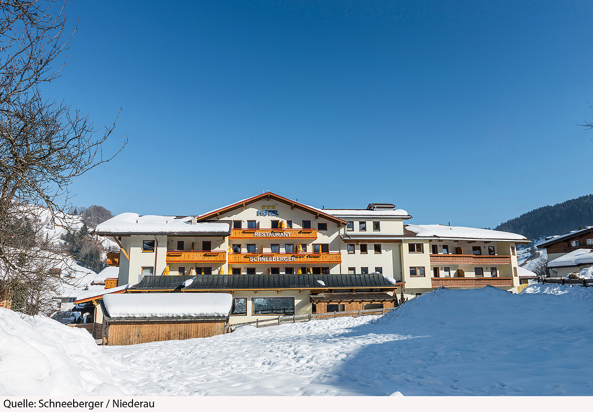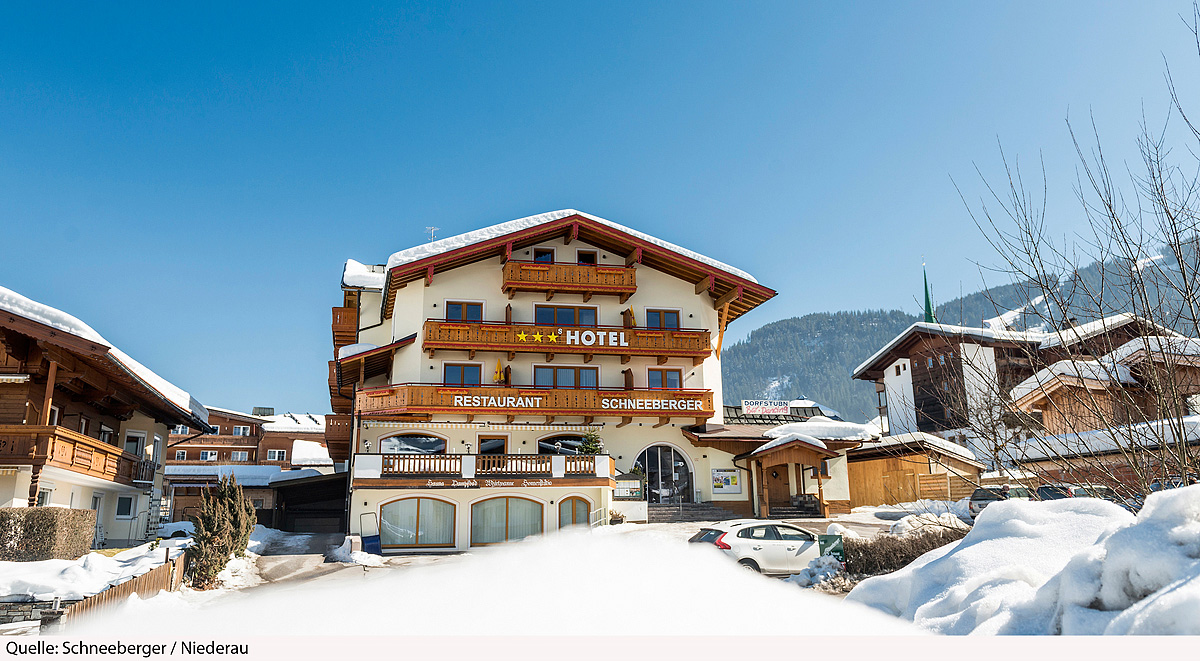 poloha hotelu v těsné blízkosti centra malebného tyrolského městečka a nedaleko lanovky menšího skiareálu Niederau