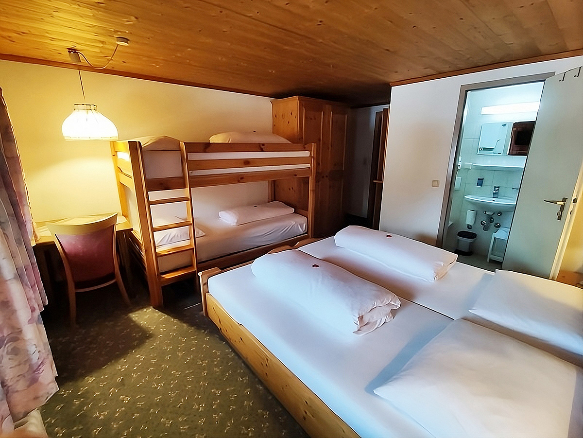 pokoj s manželskou postelí a palandou pro 1 dospělou osobu a 1 dítě do nedovršených 16 let či 2 děti do nedovršených 16 let, sociální zařízení; maximální obsazenost jsou 3 dospelé osoby či 2 dospělé osoby a 2 děti do nedovršených 16 let; infant nad rámec maximální obsazenosti není povolen!!