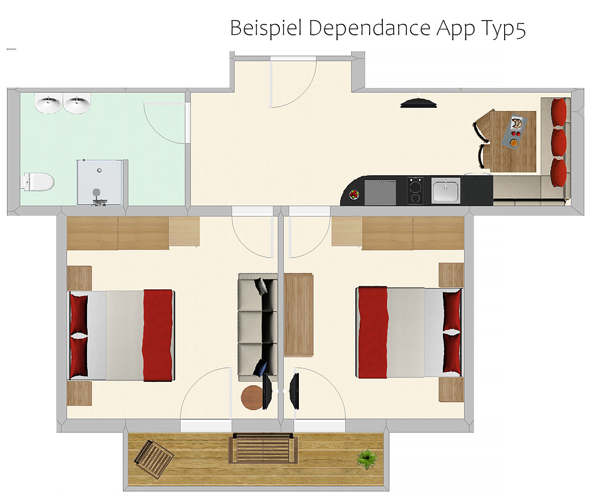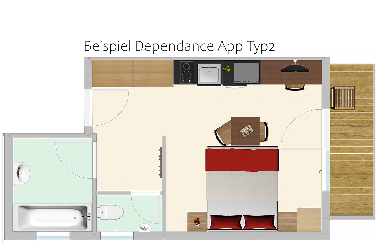 všechny níže uvedené služby jsou poskytovány v hlavní budově; všechny nabízené apartmány jsou vždy v nedávno zrekonstruované dependanci vzdálené 10 m od budovy hlavní