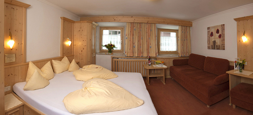 25 m² - pokoj s manželskou postelí a případně rozkládacím gaučem až pro 1 dospělou osobu a 1 dítě do nedovršených 15 let; sociální zařízení se sprchou či vanou, zpravidla balkon