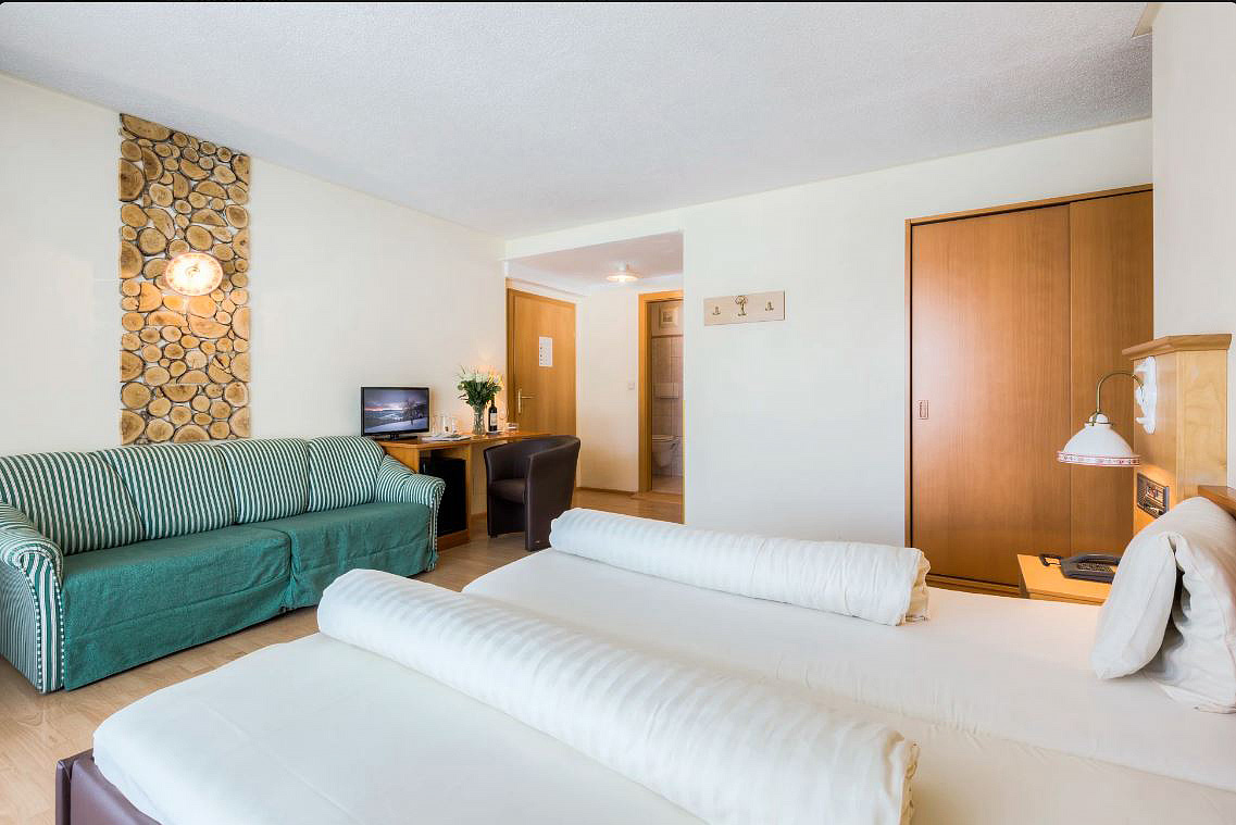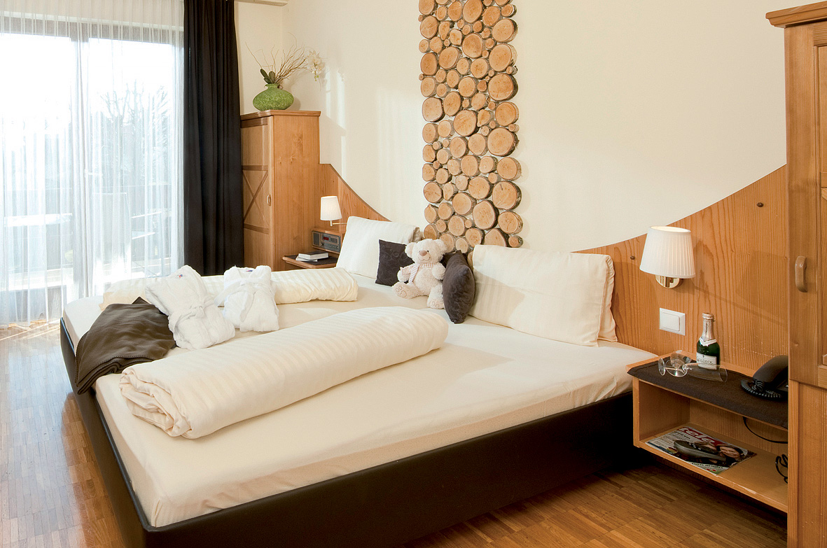 pokoj s manželskou postelí a případně 1 až 2 přistýlkami či rozkládacím gaučem pro 2 osoby, sociální zařízení se sprchou či vanou, balkon