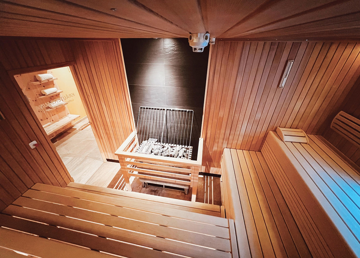 bazén 15 x 7 m s lehátky, finská sauna#, bio sauna#, pára#, infrakabina#, relaxační koutek s lehátky, masáže*, kosmetické služby*, posilovna#; služby označené# mohou využívat děti až od 16 let