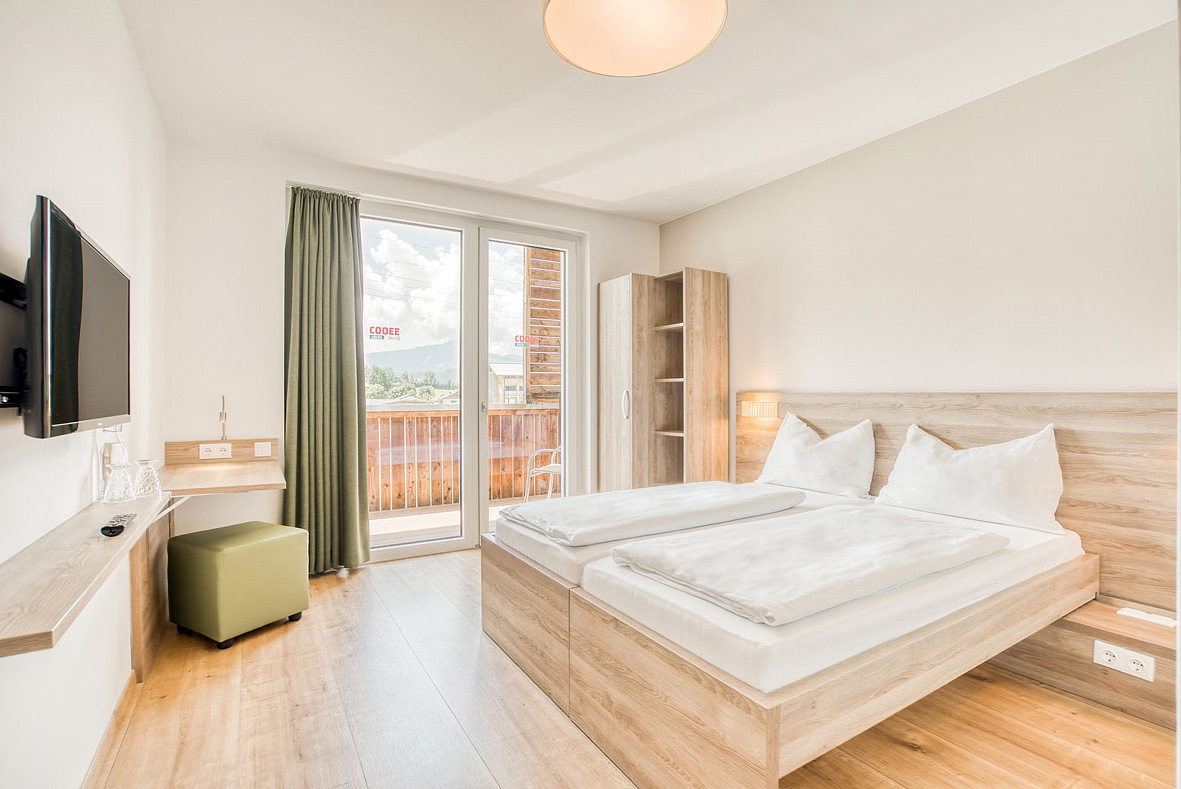 21 m² - pokoj s manželskou postelí a případně přistýlkou pro 1 dítě do nedovršených 18 let, sociální zařízení, oddělené WC, balkon s výhledem na hory; pokoj lze obsadit max. 1 dospělou osobou a 2 dětmi; infant nad max. obsazenost pokoje není povolen!