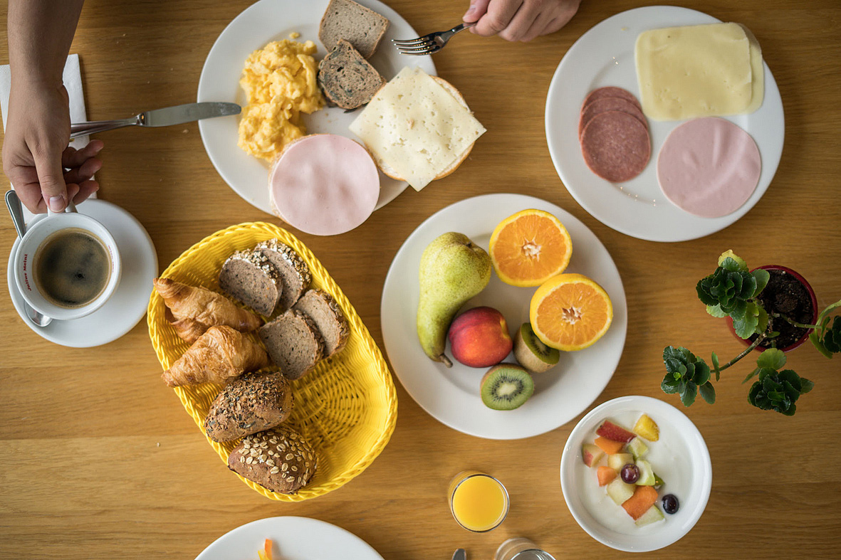formou bohatého bufetu s výběrem hlavních jídel s přílohou, studených a teplých předkrmů, salátů a dezertů, nápoje za poplatek