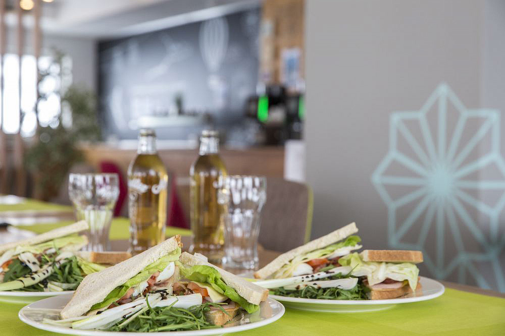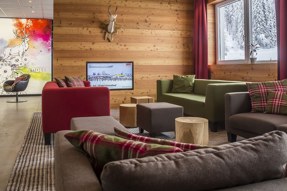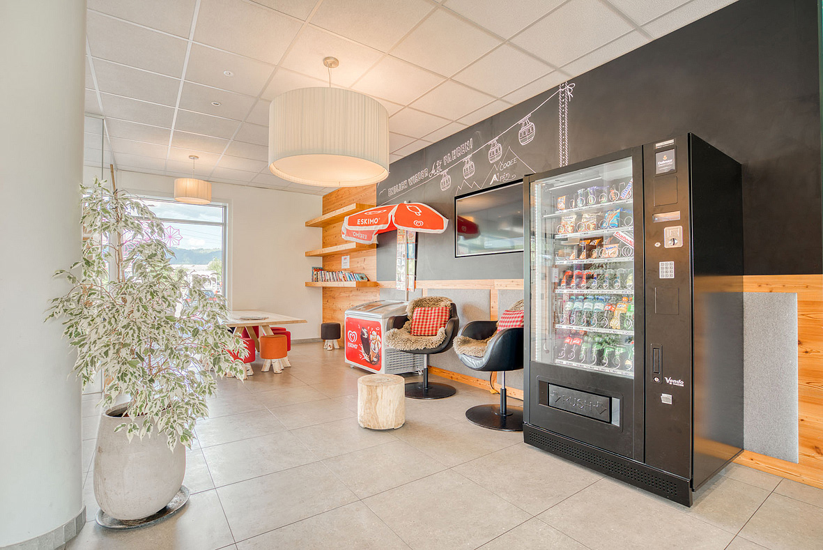recepce / lobby s posezením, restaurace vyhrazená pro hotelové hosty, bar, konferenční místnost až pro 60 osob, wi-fi připojení k internetu, úschovna lyží a lyžařských bot (1 uzamykatelný box / pokoj), výtah, velké vyhrazené parkoviště, garážová stání*, 4x nabíjecí stanice elektroaut*