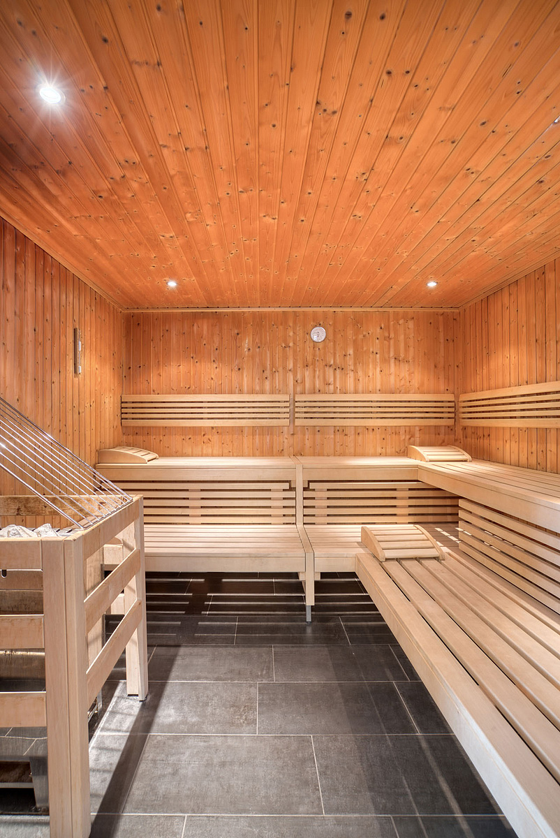finská sauna, bio sauna, relaxační koutek s lehátky, posilovna s cardio zónou