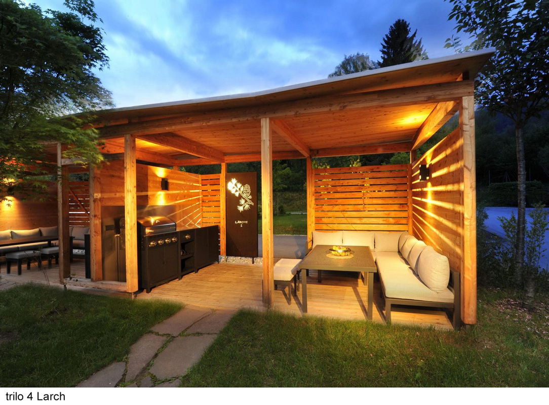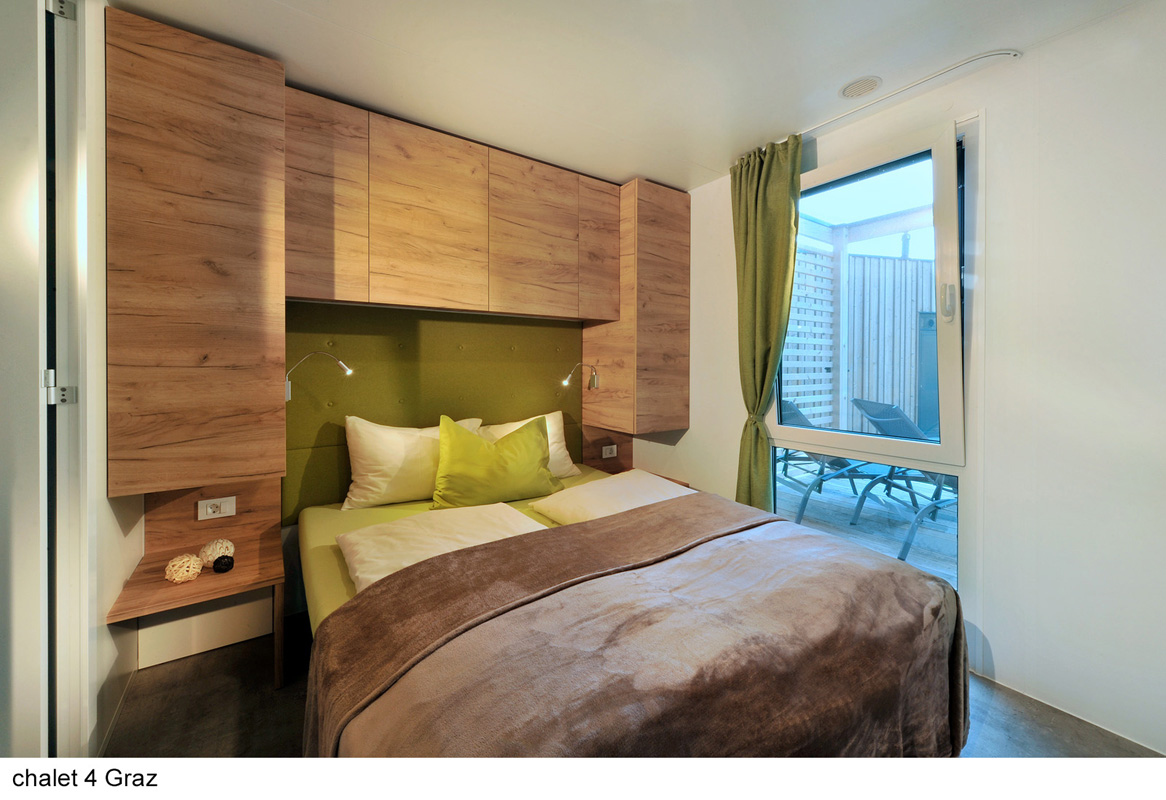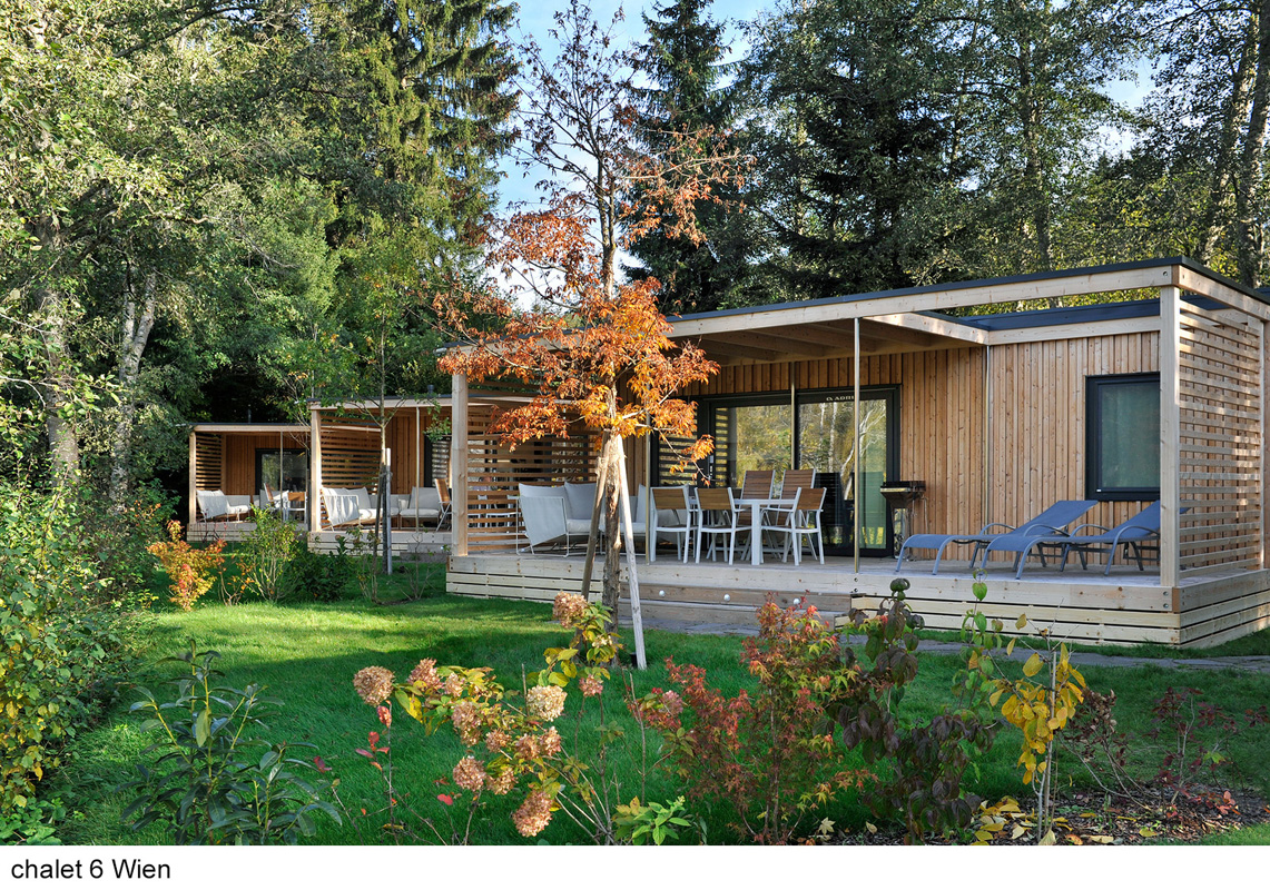 zcela jedinečný ubytovací komplex skládající se z apartmánových budov s apartmány trilo Pine a Larch, mobilehomes resp. chalety Graz a Wien a volně stojícími dřevěnými domečky Tiny home, centrální budovy s recepcí, bistrem, terasou, konferenční místností, úschovnou lyží a dětskou hernou; uvedené vzdálenosti jsou měřeny od recepce
