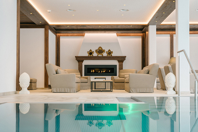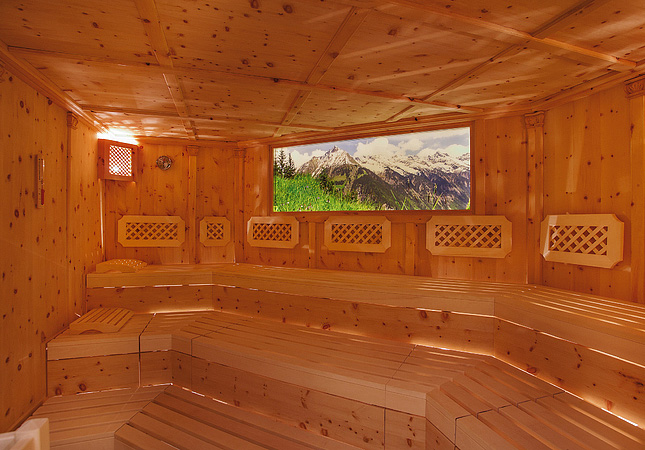 bazén 115 m² propojený s venkovním vyhřívaným bazénem (28 °C), finská sauna, bio sauna, bylinná sauna, dětská sauna, pára, infrakabina, zážitková sprcha, relaxační koutek s lehátky, posilovna, masáže*, kosmetické služby*