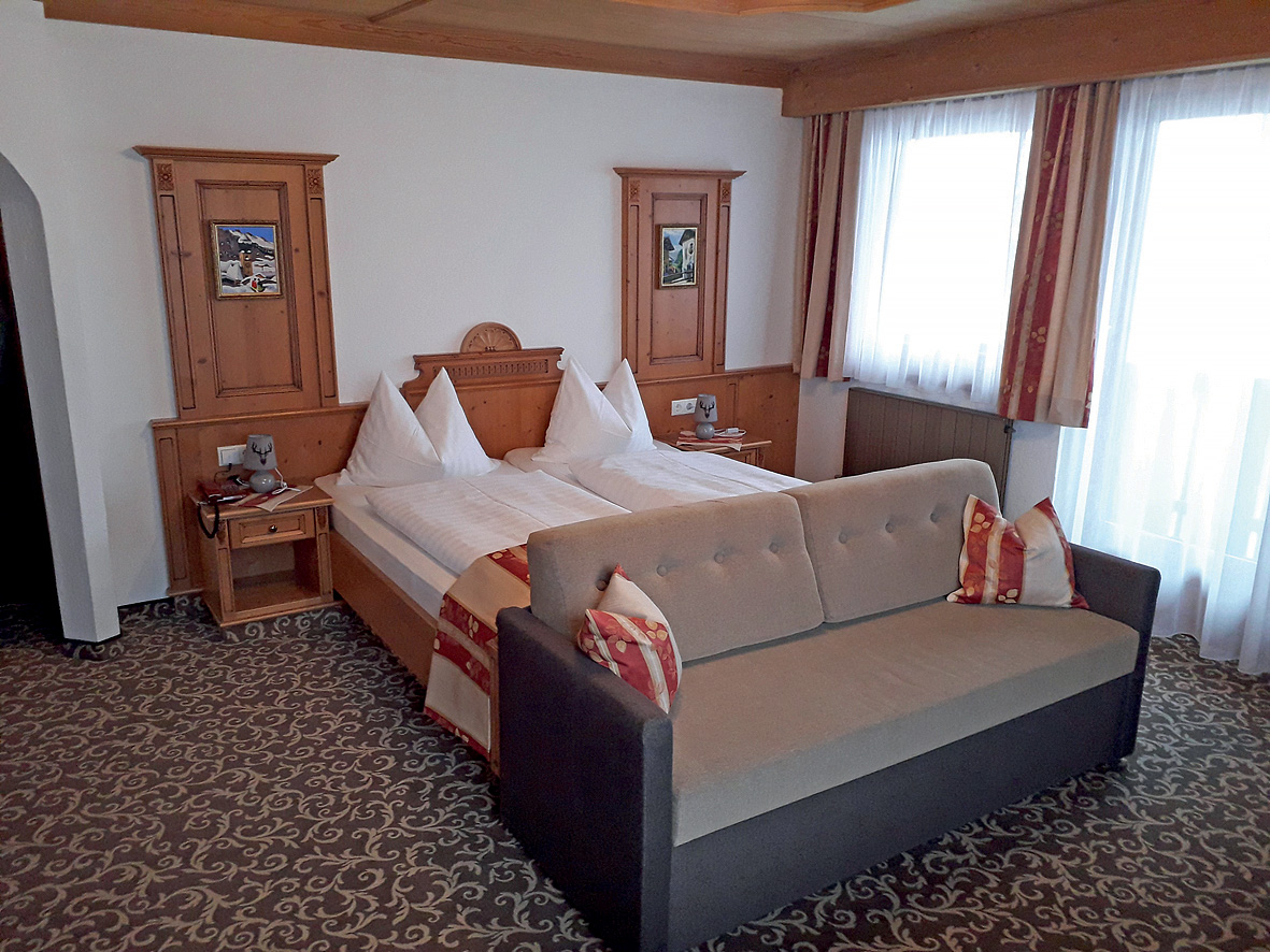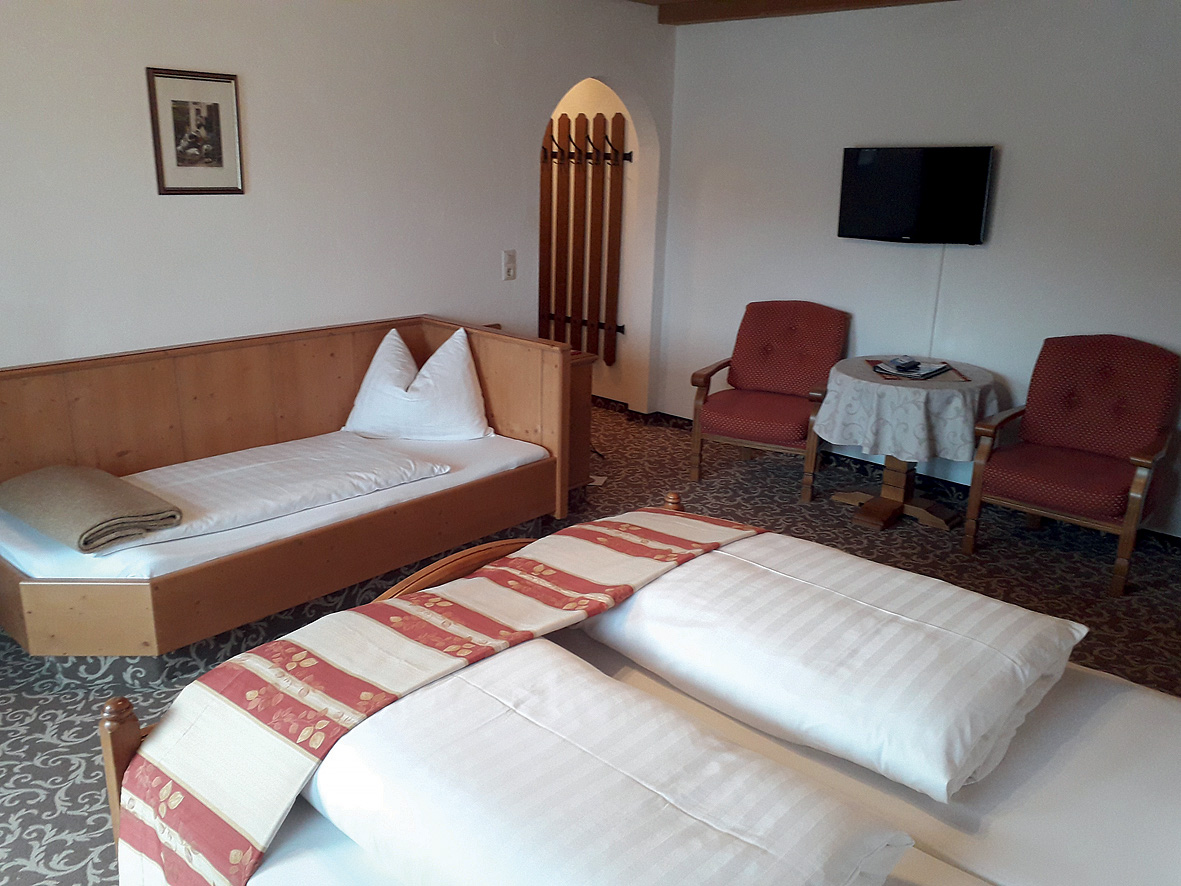 40 m² - pokoj s manželskou postelí, obývací pokoj s manželskou postelí a případně přistýlkou pro 1 dítě do nedovršených 13 let, 1x sociální zařízení; oba pokoje jsou od sebe odděleny spojovacími dveřmi; minimální obsazenost pokoje jsou 2 dospělé osoby a 1 dítě; 5. osoba možná pouze na vyžádání včetně kalkulace
